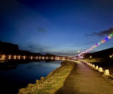 Í Vági er vøkur og litrík ljósketa komin upp at hanga, og er hetta afturhvarv, ið minnir tilkomin fólk aftur á sjeyti og áttatiárini.
