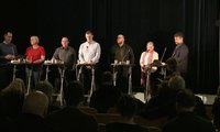 Floksforfólkini við pallborðið í Salti í gjárkvøldið Mynd: Dagfinn Olsen