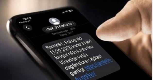 Ver ansin: Í løtuni herja følsk SMS-boð, ið royna at lokka persónligar upplýsingar úr tær. Tey síggja út at vera frá Samleikanum – tað eru tey ikki.