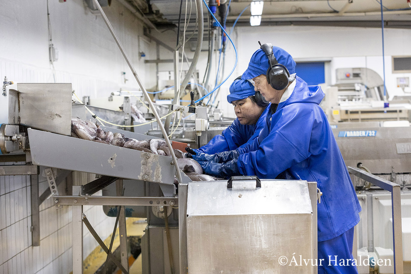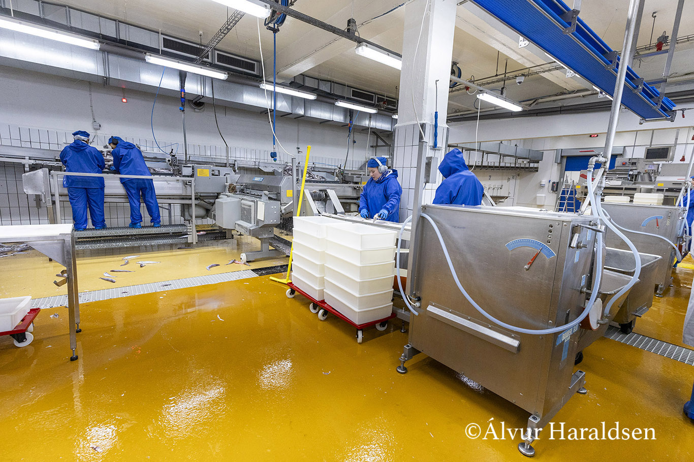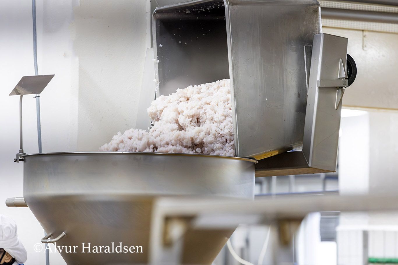 Áðrenn fiskurin verður pakkaður, verður hann skorin, og gjørdur til fars. Farsið verður koyrt í ein vogn, trillað yvir til pakkibandið og vigað, áðrenn tað verður pakkað.