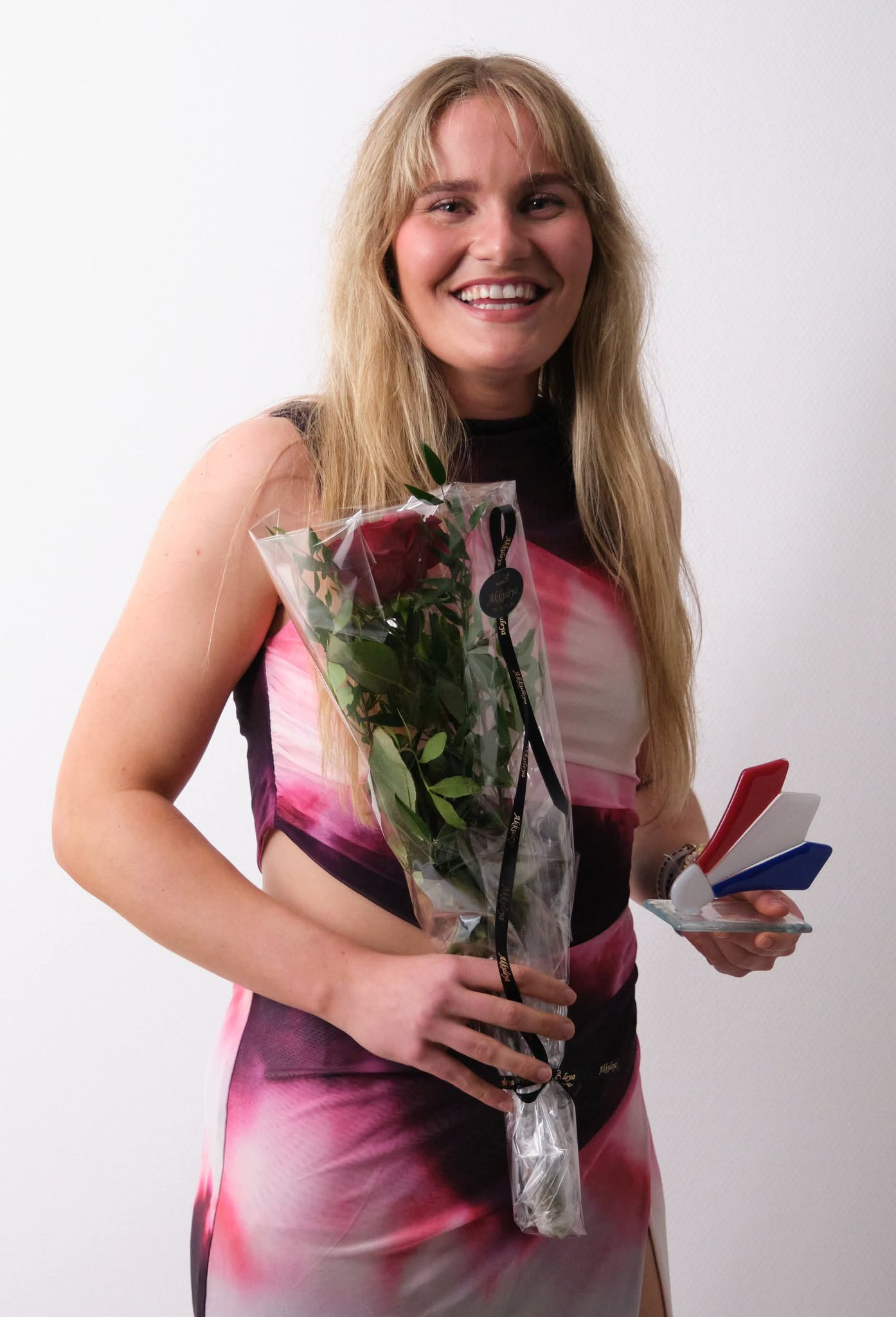Heiðraðu leikararnir fingu rósur og serstakt minnissteyp handa frá landsliðsvenjaranum.