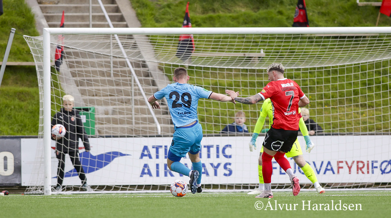 Álopsspælarin Jóhan Josephsen skoraði tvey mál ímóti KÍ. Hann sá gula kortið, og tað kostar leikbann í kvøld, og miðverjin og liðformaðurin Aleksandur Ó. Jensen sá gula kortið ímóti KÍ og er leikbannaður.