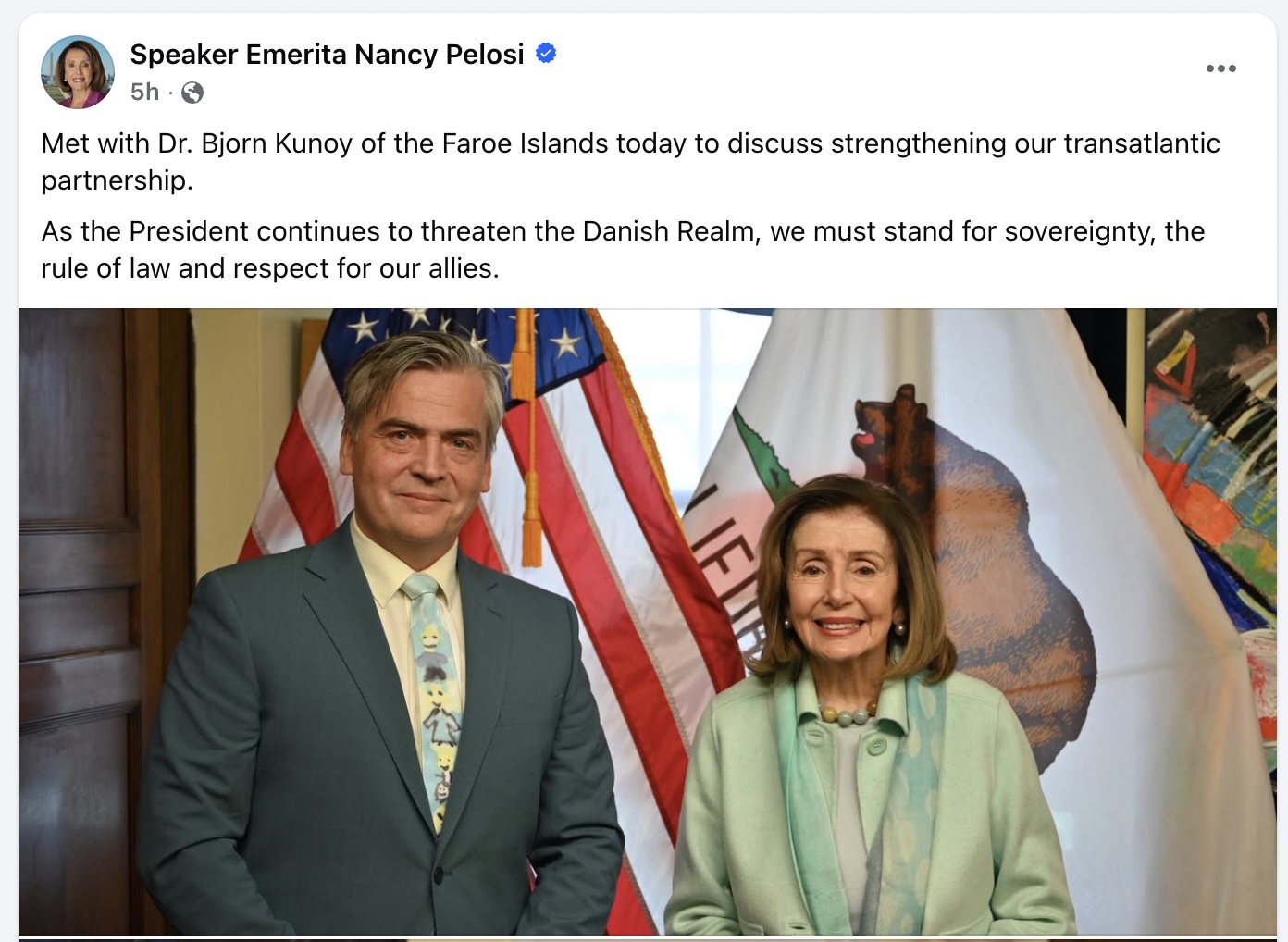 Soleiðis skrivar fyrrverandi forkvinnan í Umboðsmannatinginum í USA, Nancy Pelosi, á Facebook í dag.