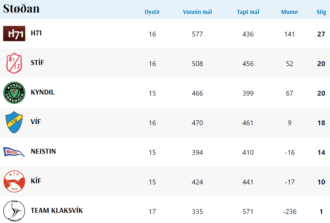 HER ber til frá HSF at síggja dómaraseðilin frá dystinum millum H71 og Team Klaksvík, umframt støðuna í deildini: