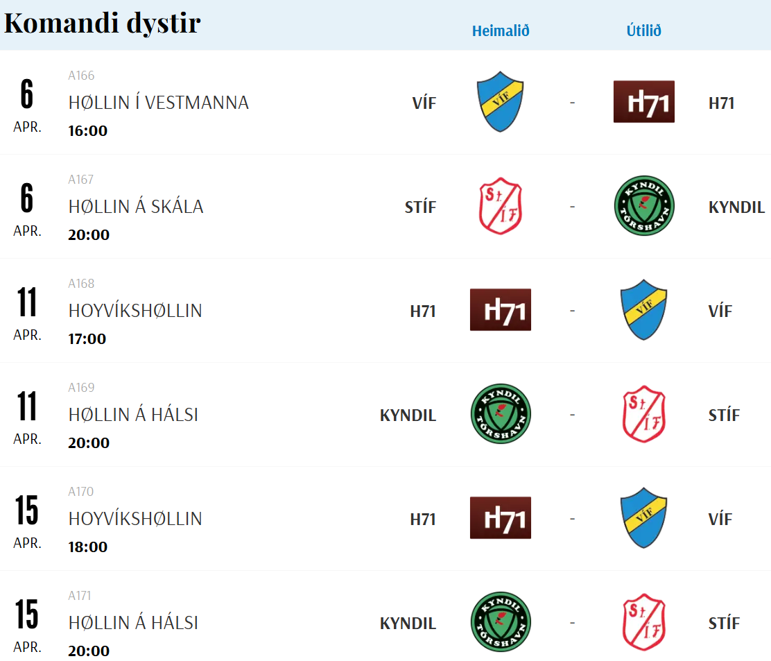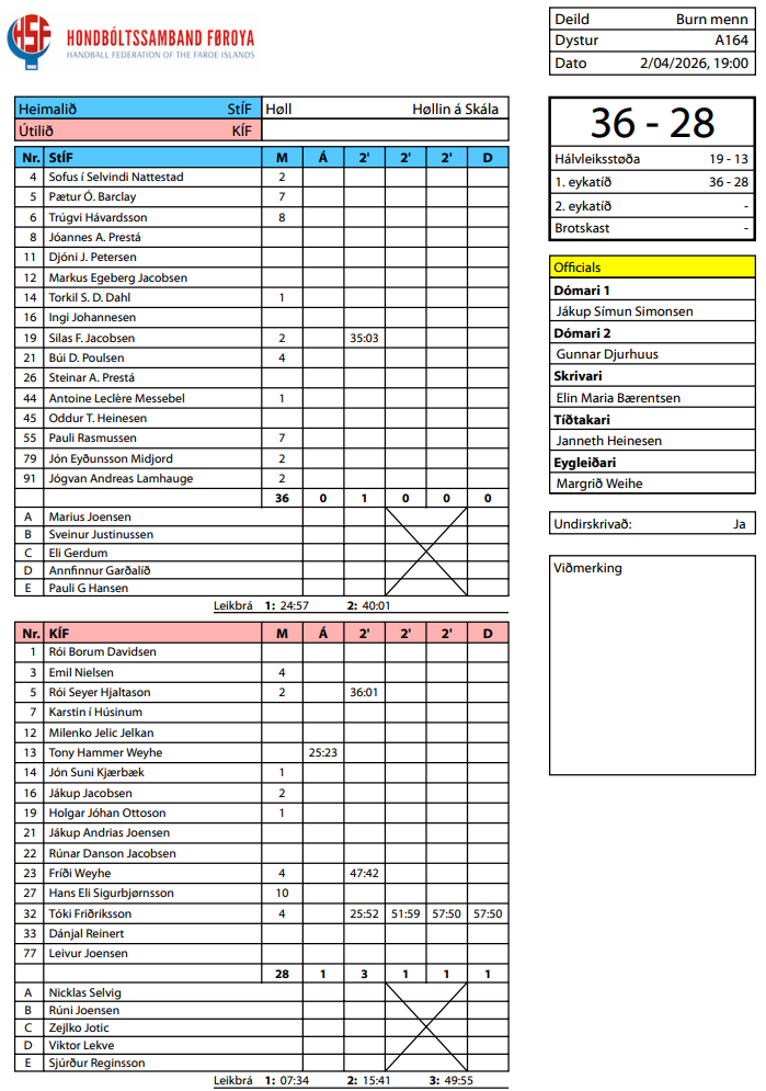 HER ber til frá HSF at síggja dómaraseðilin frá FM-fjórðingsfinaluni í høllini á Skála, umframt skránna fyri FM-hálvfinalurnar: