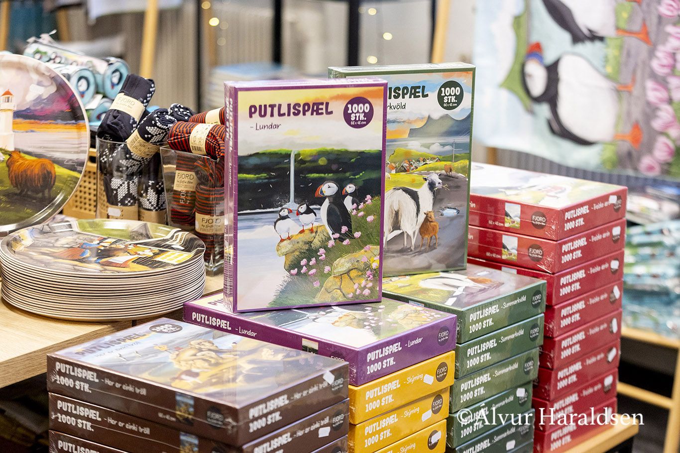 Síðani var farið í gongd við at flyta tekningarnar á taskur, viskustykkir, plakatir, skriviblokkar og annað. Í august fór fyrsta bíleggingin við íslendskum vørum avstað.