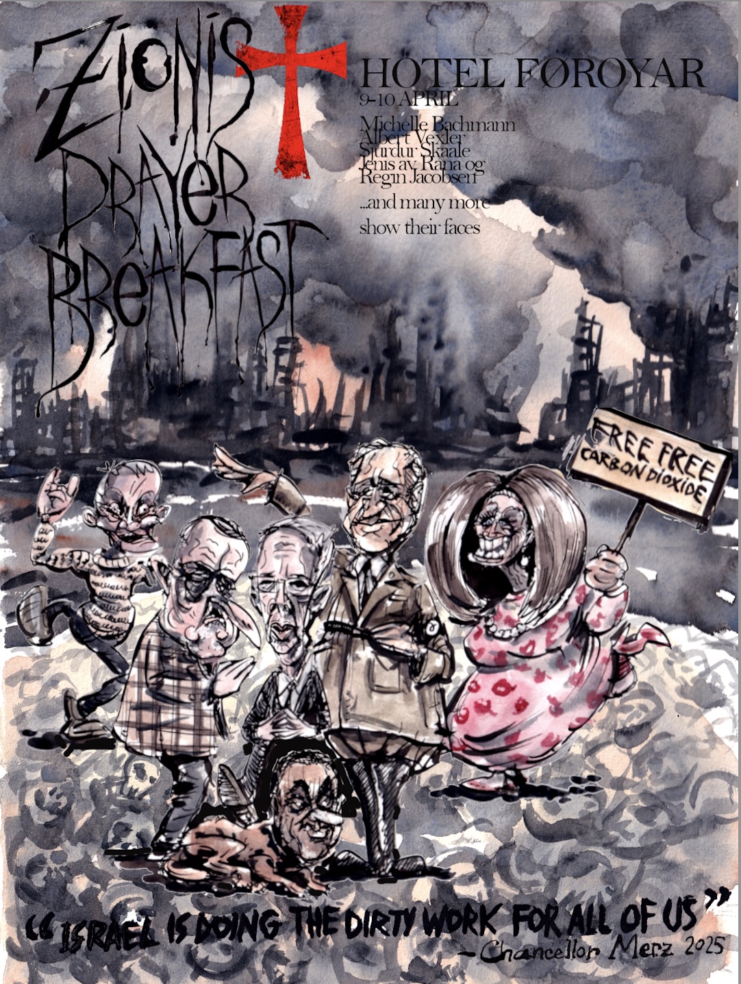 Í dag og í morgin hittast eitt úrval av politiskum umboðum, greivum og barónum úr vinnulívinum, umframt religiøsum leiðarum – harímillum nakrir amerikanarar – til eina ráðstevnu nevnd “Jerusalem Prayer Breakfast – praying for peace”. Strange bedfellows, sum Shakespeare hevði sagt.