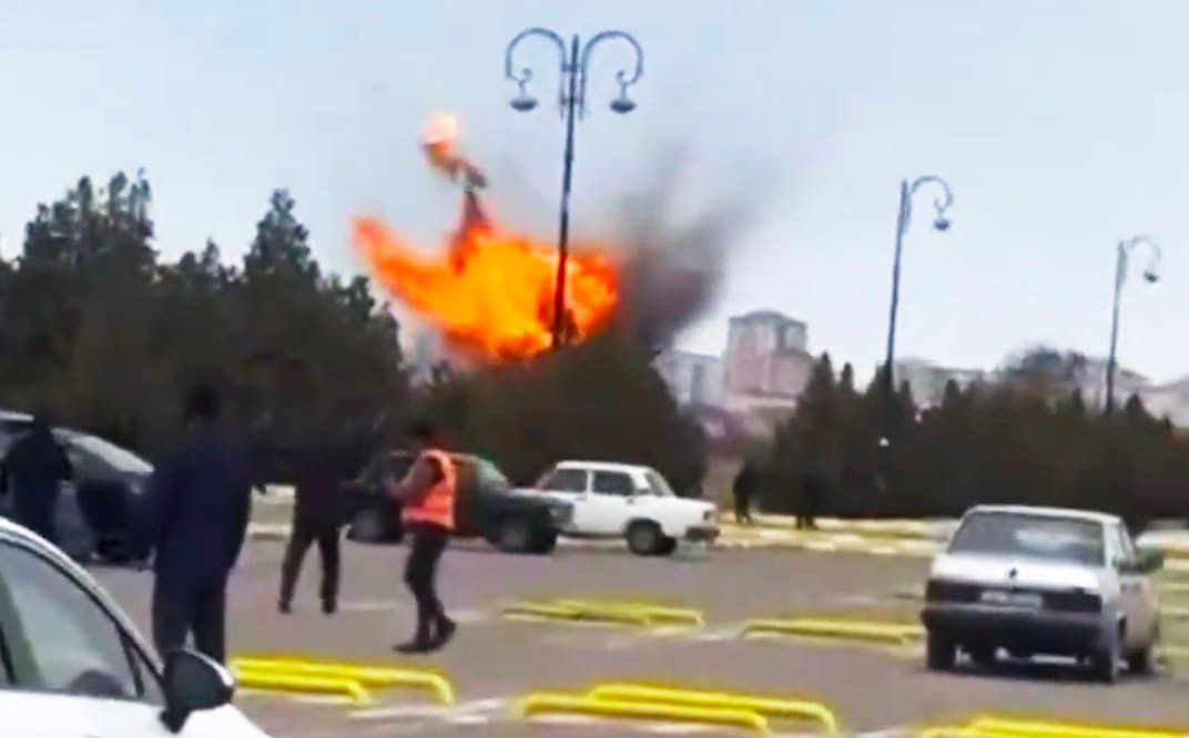 Á sosialum miðlum síggjast video-brot, sum skulu vísa hendingarnar, tá drona rakti við altjóða flogvøllin í Nakhitsjevan.