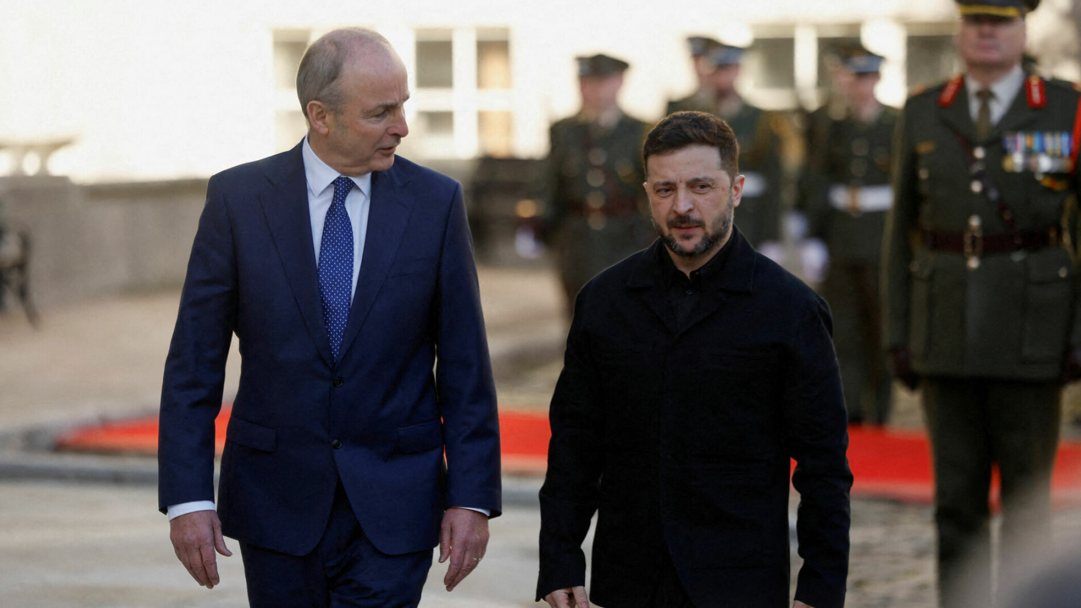 Á myndini omanfyri sæst Zelenskyj saman við írska forsætisráðharranum, Micheal Martin.