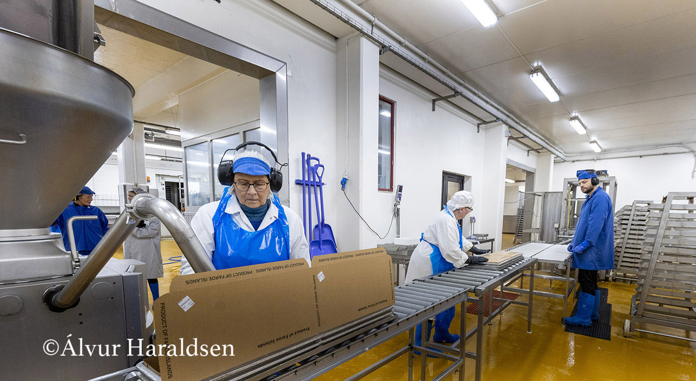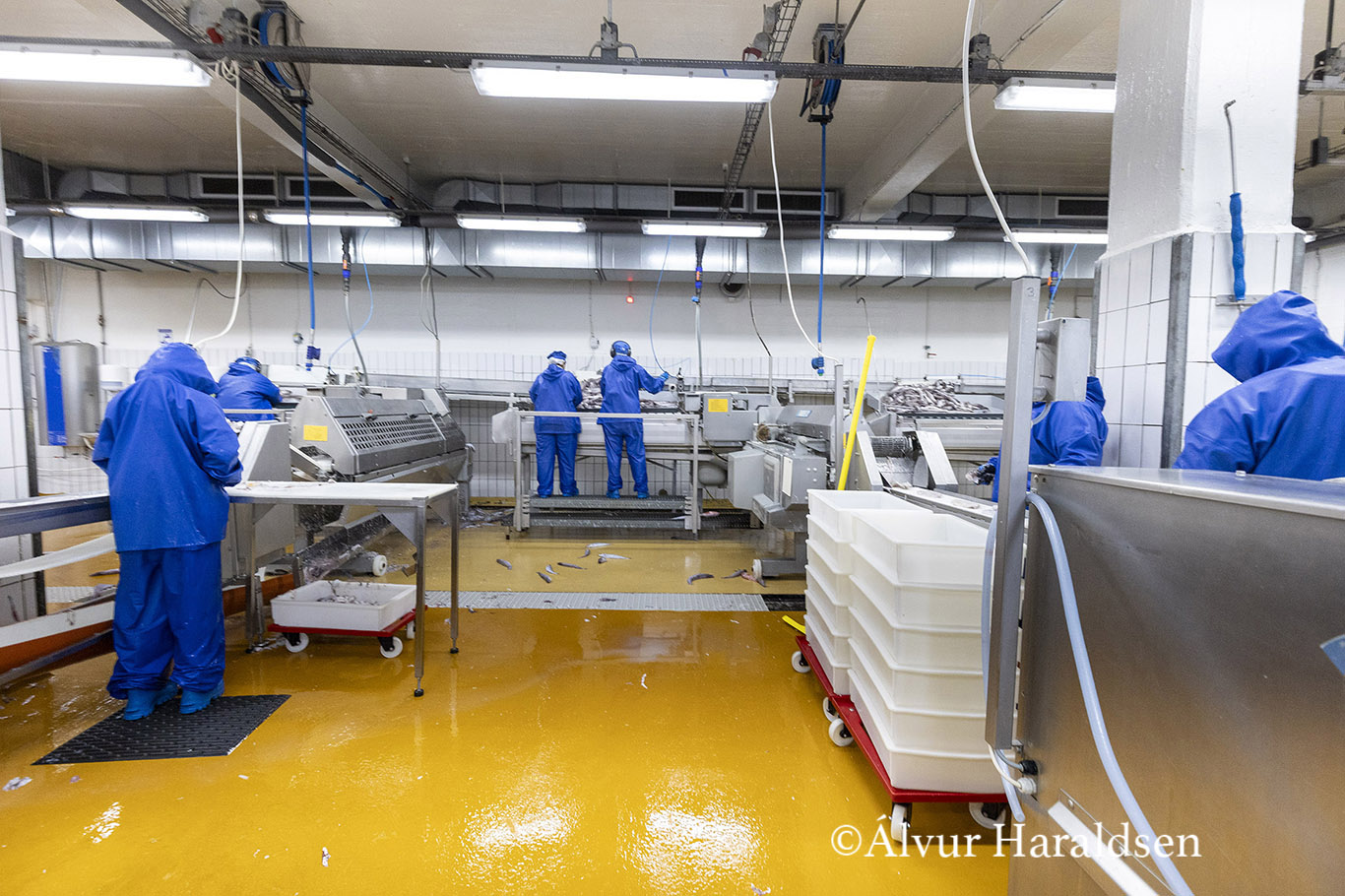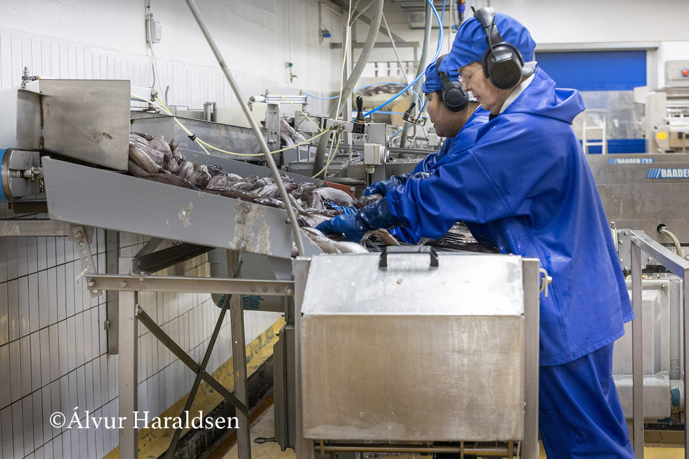 Tríggjar maskinur eru á Tavuni. Fiskurin verður lagdur í flakamaskinurnar, síðani standa tvey fólk og reinskera. Fløkini fara í farsmaskinuna, sum melur tey til fars. Síðani fer farsi yvir til pakkibandið, har tað verður pakkað í blokkar. Olea Hansen stendur við pakkibandið, og tað hevur hon gjørt síðani hon byrjaði á Tavuni.