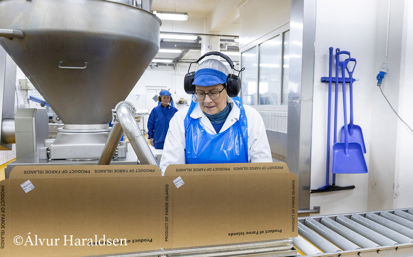 Líka síðani Olea byrjaði á Tavuni hevur hon pakkað. Vanliga eru tey seks sum pakka. Ein lyftur pannurnar á pakkibandið, og ein tekur tær av aftur, tá farsið er komið í. Við pakkibandið eru fýra uppgávur, fyrst verður pakkitilfarið sett í stálrammuna, farsið verður vigað, síðani verður tað slættað, og til seinast verður lok koyrt á. Síðani verður pannan lyft á vognin. Tað er pláss fyri 28 pannum á vogninum. Tá vognurin er fullur, verður roterað, soleiðis at tær skiftast um tær fýra uppgávurnar.