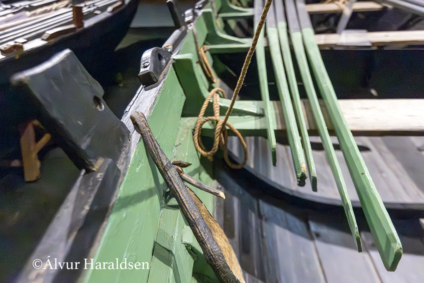 - Vit hava jú eingi trø í Føroyum, tí blivu bátarnir bygdir við innfluttum viði. Í Noregi eru bátarnir eyðkendir av, at tú kundi fara í skógin og taka eitt træ ella eina klótu. Tá fært tú ein sterkari bát og kann forma hann smidliga, men í Føroyum hevur tú lagað bátin til tey viðurskifti sum eru, bæði handilsliga, og hvussu umstøðurnar vóru í sjónum.