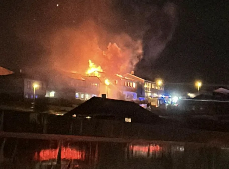 Løgreglan heitti á fólk um at halda seg burtur frá økinum, tí nógvur roykur var, og so at sløkkiliðið slapp at arbeiða.