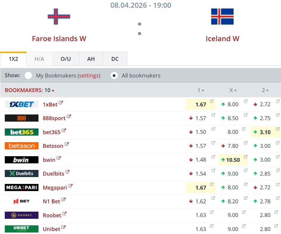 Oddsini upp á javnleik liggja millum 7,80 og 10,50.