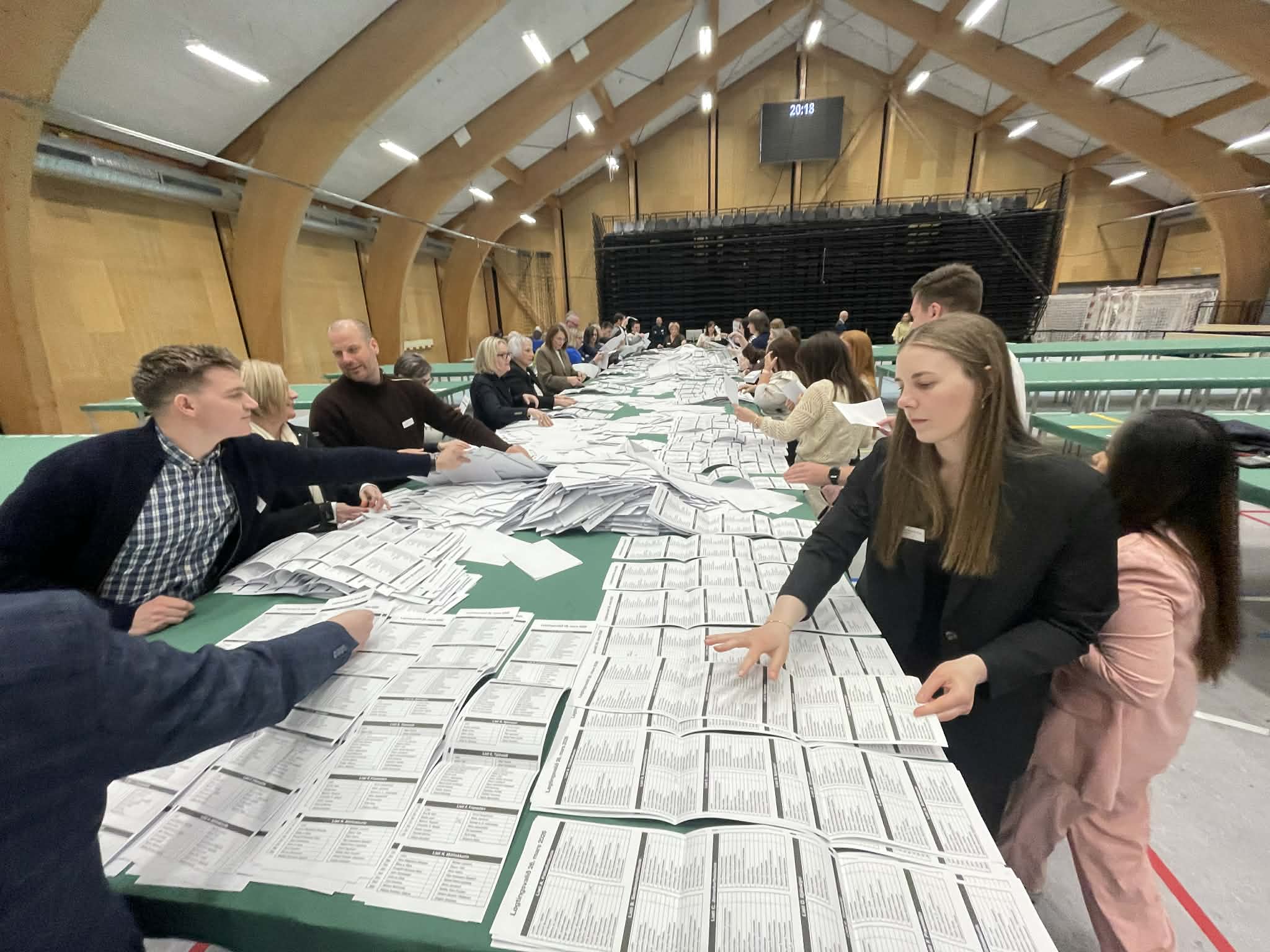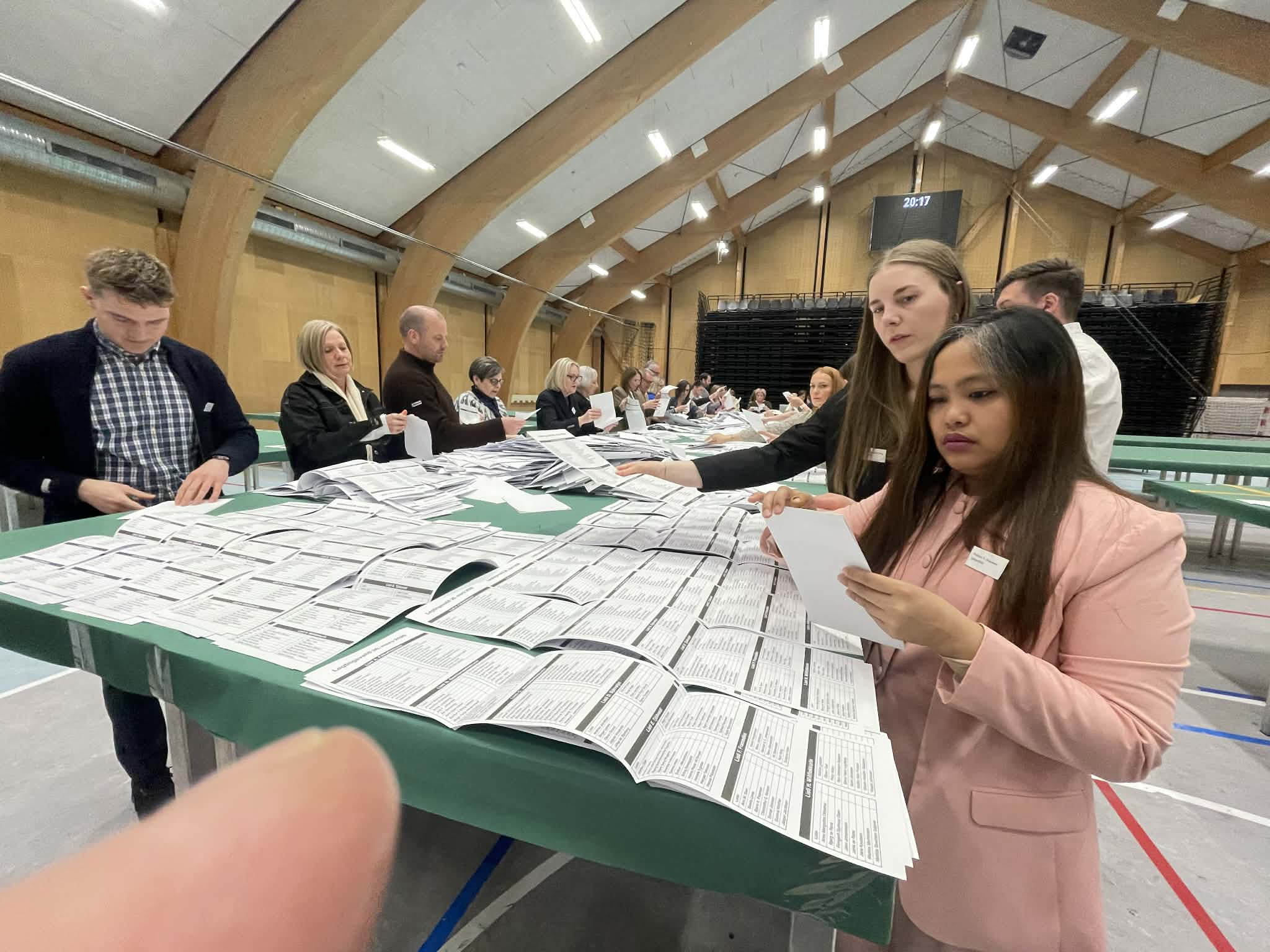 Tey eru farin at telja atkvøðurnar á Hálsi í Havn, sum er størsta valstaðið í landinum, har nakað oman fyri 10.000 fólk kunnu velja.