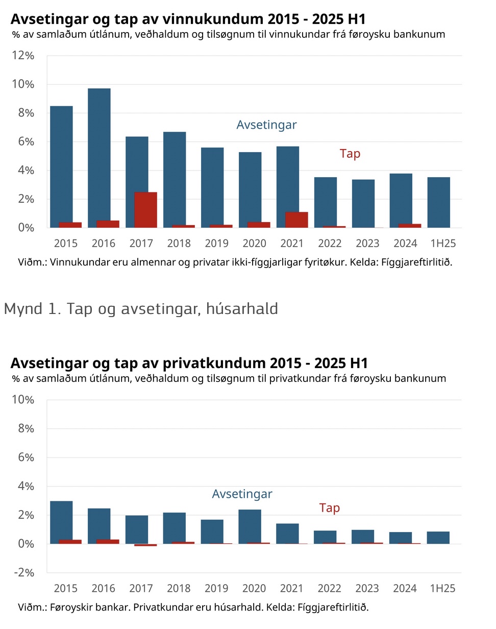 Fyri húsarhaldini hava peningastovnarnir sett 0,9% av ímóti tapi burturav samlaðu útlánunum í 2025, sí mynd 2.