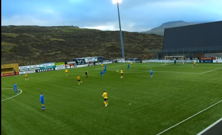 Miðskeiðis í fyrra hálvleiki legði Benadiktus Olsen NSÍ á odda við brotssparki, og sjey minuttir undan steðginum javnaðu gestirnir til 1-1. Málskjútti var liðformaðurin Pætur Augustinussen.