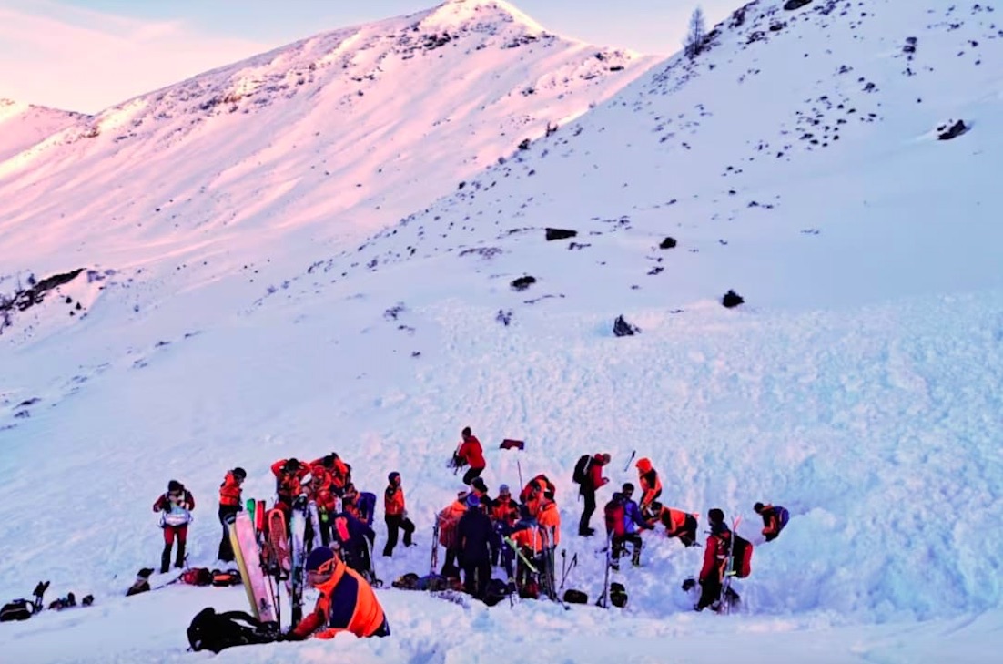 Á myndini omanfyri síggjast bjargingarfólk leita eftir saknaðum í skalvalopunum.