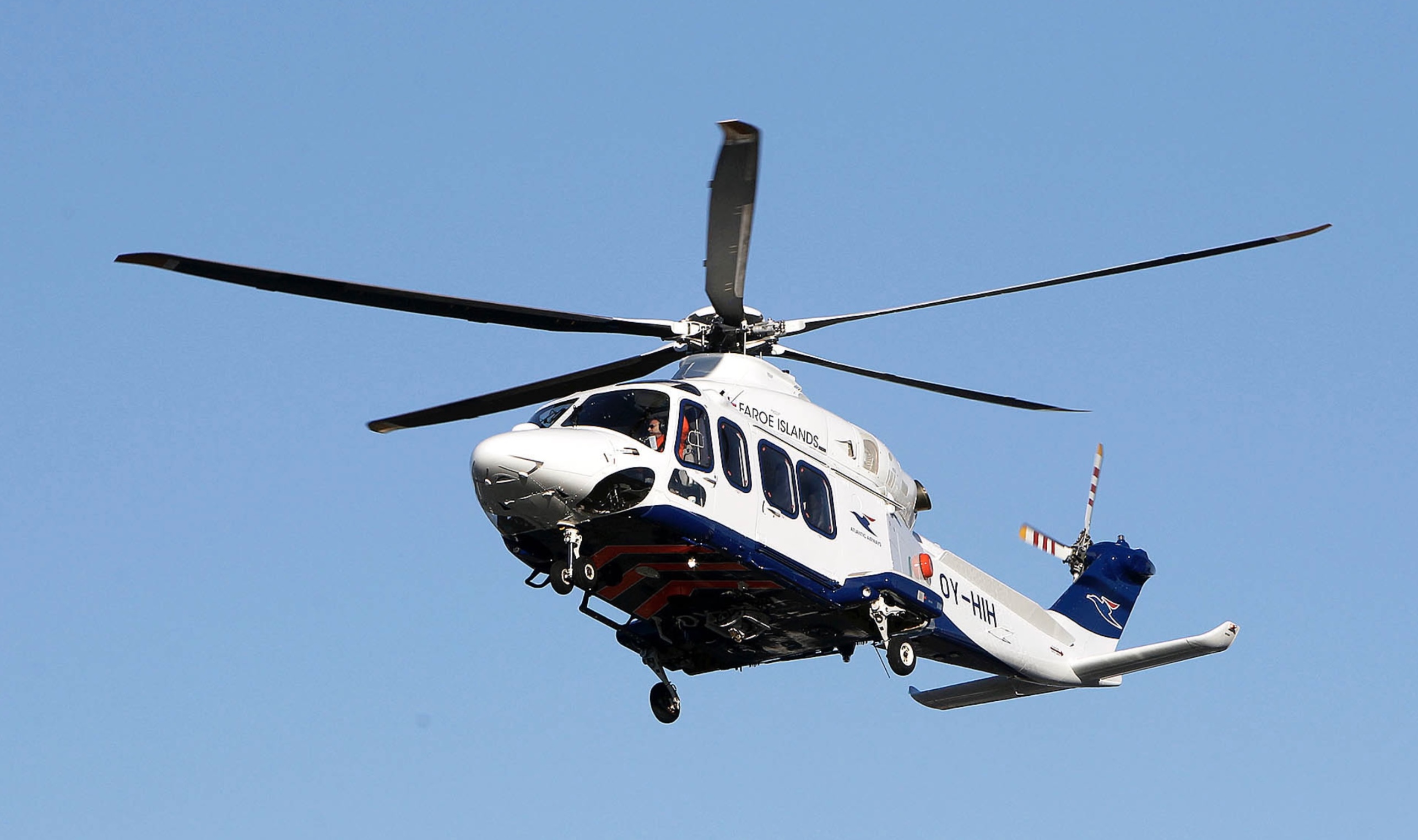 Tað endaði við, at tyrlan hjá Atlantsflog varð boðsend eftir monnunum, og stutt fyri klokkan tíggju vóru teir á flogvøllinum í Vágum.