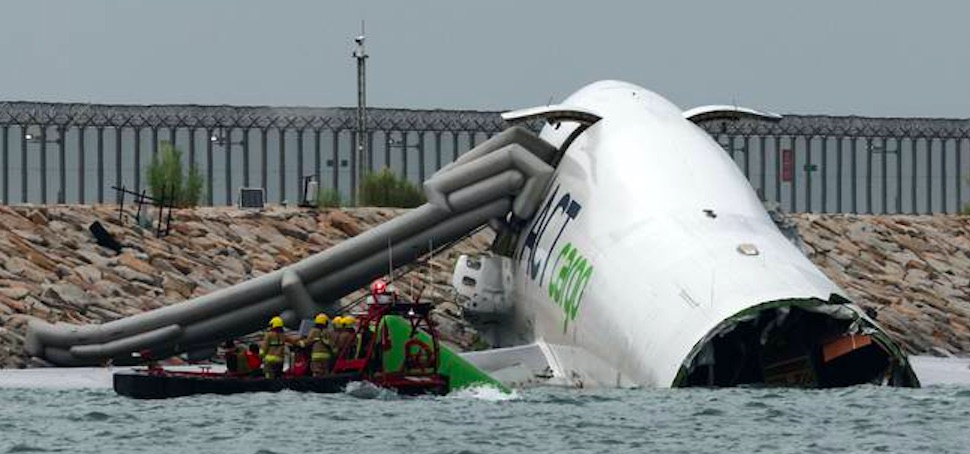 Sambært ávísini, South China Morning Post, rakti flogfarið, sum var í ferð við at lenda, eitt akfar, sum endaði á sjónum.