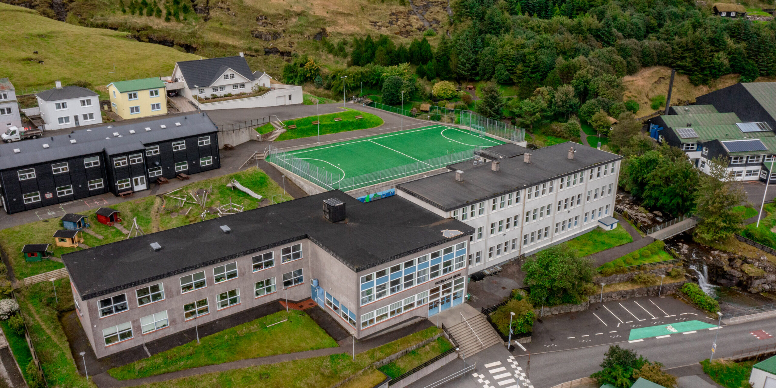 - Tá gamli skúli verður umvældur í næstum, fer øll takflatan, sum er góðar 1.000 fermetrar, at verða klødd við sólorkupanelum. Hetta fer at geva góðar 100.000 kWh árliga. Tað munar væl, tí gamli skúli brúkar áleið 70.000 kWh árliga.