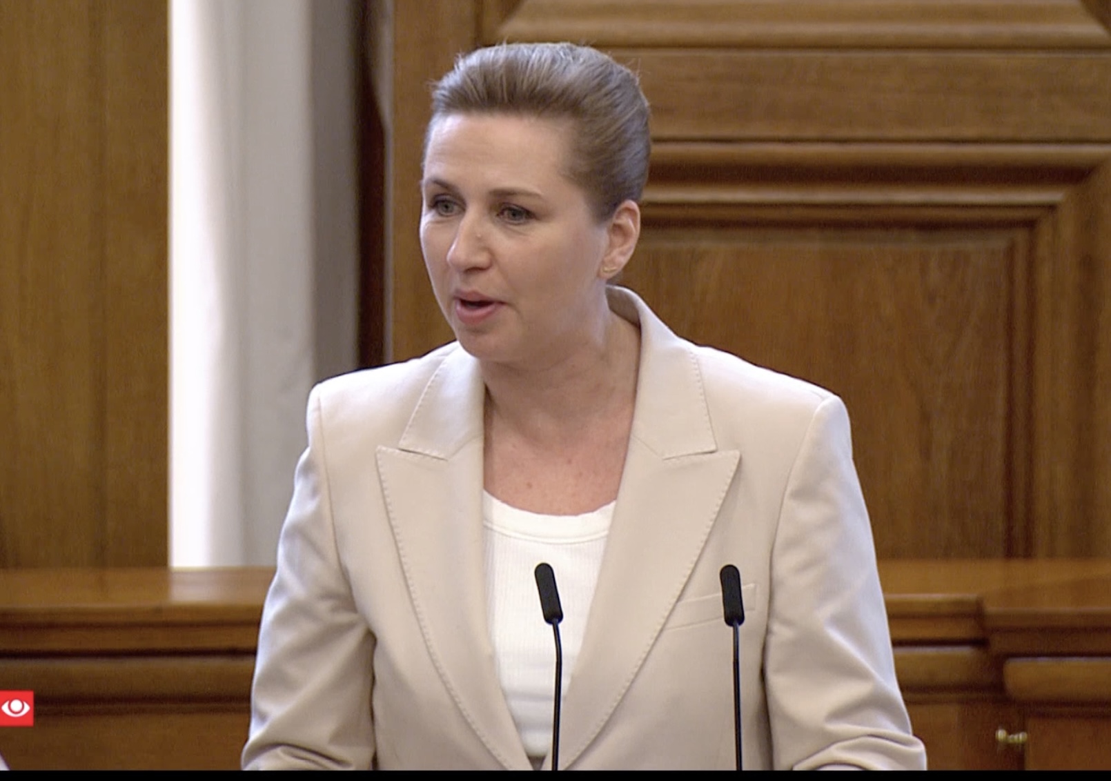 – Eg útiloki ikki nakað frammanundan. Tí í tíðini, vit liva í, fari eg at halda meg frá at seta endalig krøv, sigur Mette Frederiksen, forsætisráðfrú og forkvinna í danska Javnaðarflokkinum.
