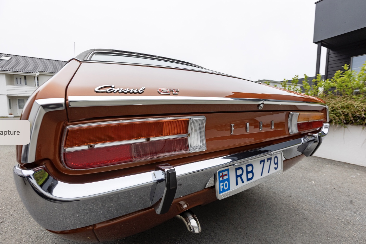 Eftir at hava leitað á netinum fann hann hendan Consul Coupe GT í Hollandi. Bilurin er upprunaliga komin úr Sveis. Børge keypti bilin í 2016 og fekk hann heim við Faroe Ship.