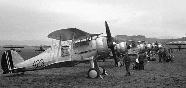 Tað var í 1938 og 1939, at norski herurin fekk 12 jagaraflogfør av slagnum, Gloster Gladiator, sum vóru framleidd í Bretlandi.