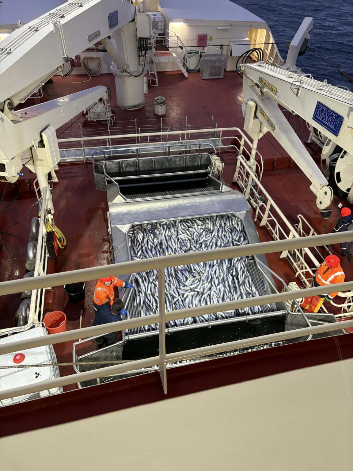 Her kemur kapasiteturin og støddin á skipinum til sín rætt, tí forholdið vatn og fiskur er júst tað sama hjá hinum uppisjóvarskipunum, sum vanligt er at brúka. Ferðin er long og fyrimunur er at hava stóra last tá ferðin er long, fyri at avmarka orkunýtsluna, tá tað er møguligt.