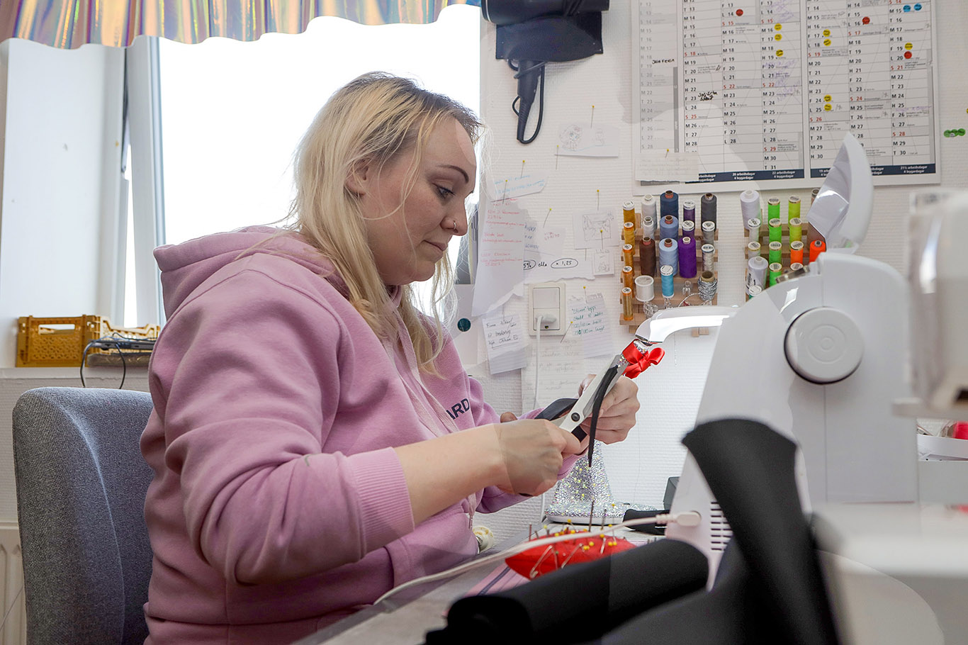 Enn hevur Rannvá Álaberg bara vanligar seymimaskinur, men ætlanin er at fáa ídnaðarseymimaskinur, og tá verða møguleikarnir enn fleiri.