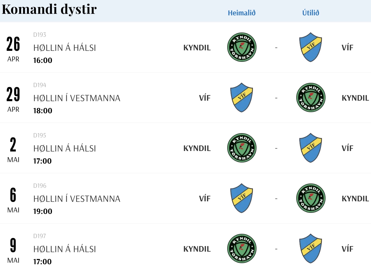 Sunnudagin klokkan 16 verður fyrsta FM-finalan í SMS-deildini leikt í høllini í Hálsi í Havn, har Kyndil og VÍF hittast.
