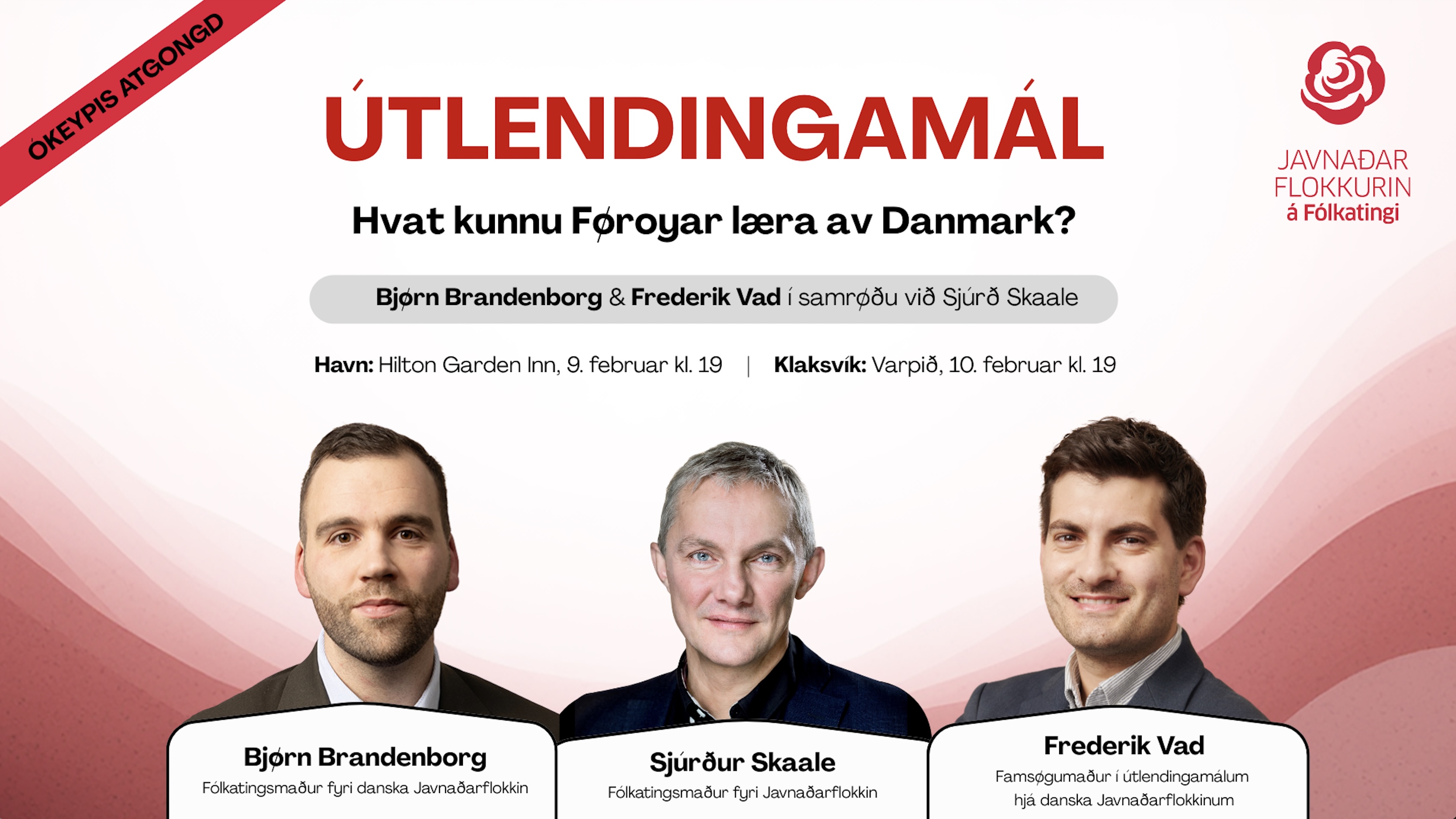 Í sambandi við at útlendingamál eru á dagskránni í Føroyum hevur Sjúrður Skaale boðið Bjørn Brandenborg og Frederik Vad úr danska Javnaðarflokkinum til Føroya. Teir fara at hugleiða um, hvat Føroyar kunnu læra av donsku royndunum.