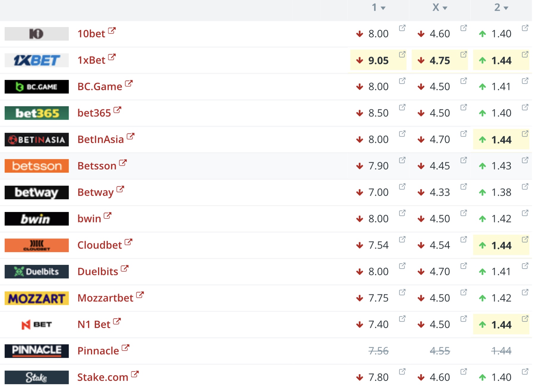 Oddsini upp á kekkiskan útisigur liggja millum 1,37 og 1,44.