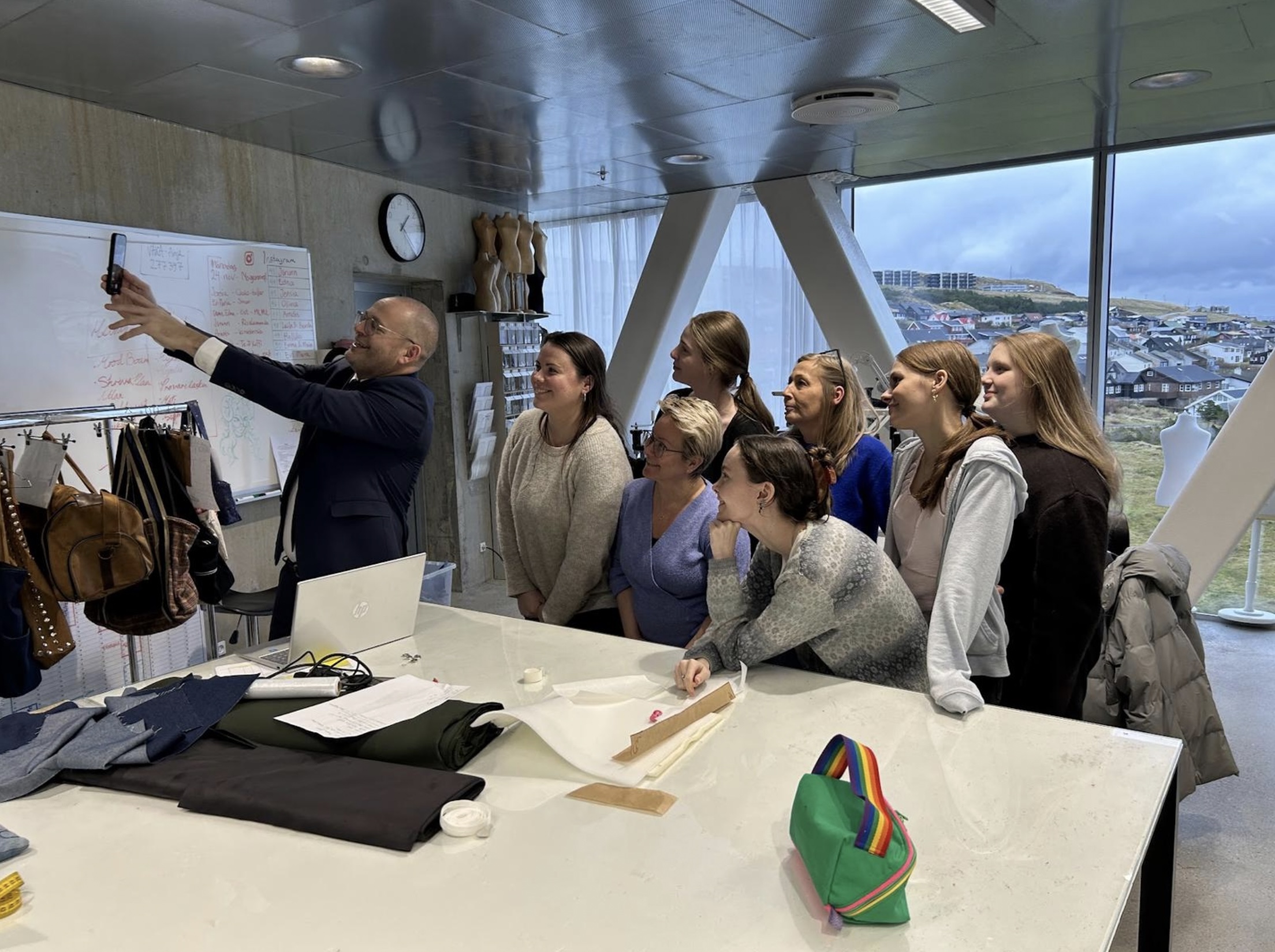 Landsstýrismaðurin nýtti eisini høvi at heilsa upp á næmingar og starvsfólk á klædnaatstøðiútbúgvingini, sum var so nógv umrøtt herfyri. Landsstýrismaðurin er glaður fyri, at ferð nú fer at verða sett á arbeiðið at endurskoða útbúgvingarnar innan klædnaatstøði og tilvirkisatstøði, soleiðis at hesar kunnu blíva heilar yrkisútbúgvingar. Tað er hugtakandi at síggja allan kreativitetin, sum er á einum slíkum staði.