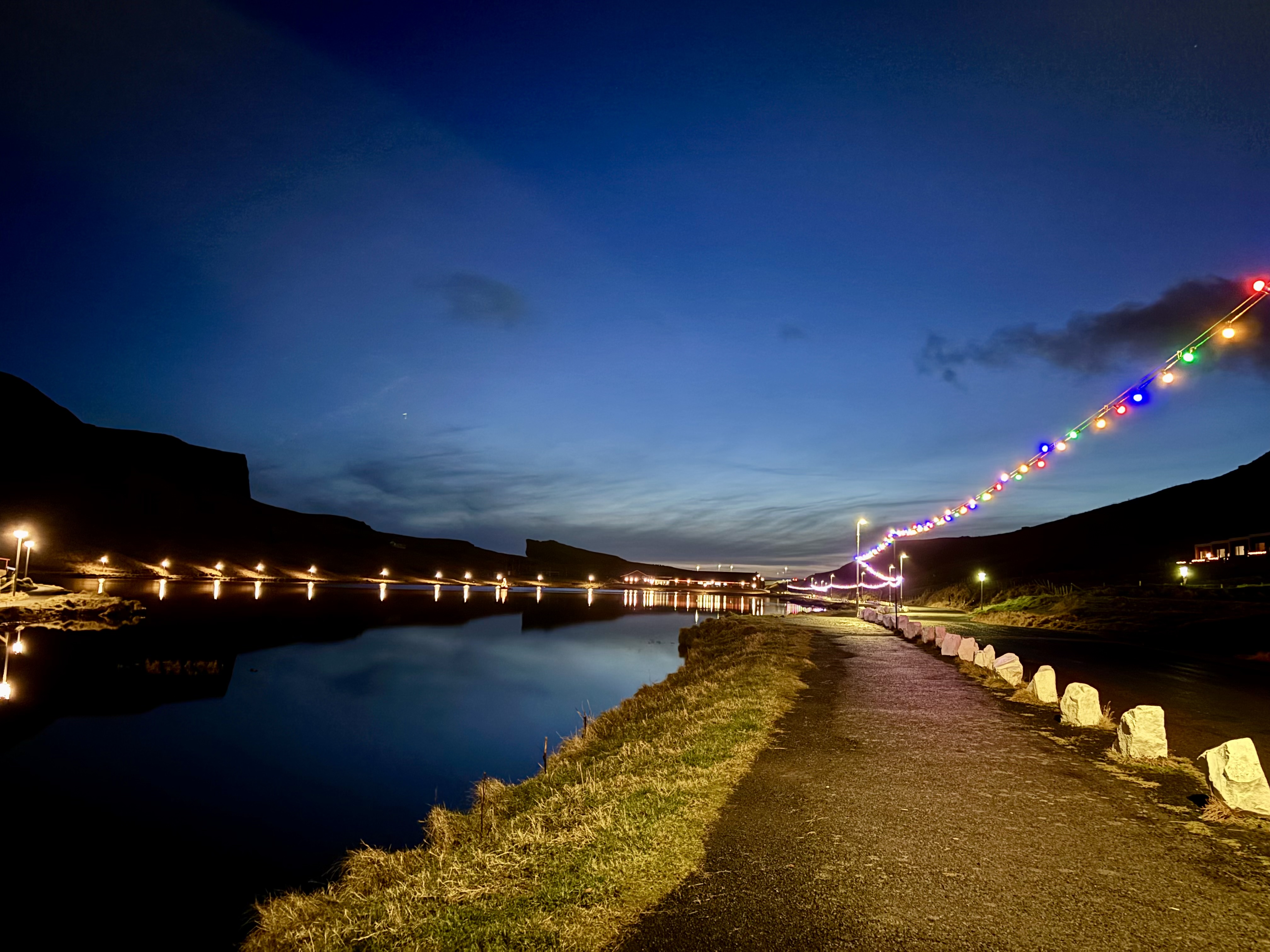 Í hesi vikuni hevur arbeiðstoymið stákast óført vesturi við Vatnið. Toymið hevur verið í gongd við at leggja síðstu hond á jólapyntið hjá kommununi. Við Vatnið er ein 500 metrar long ljósketa við kulørtu perunum hongd upp.