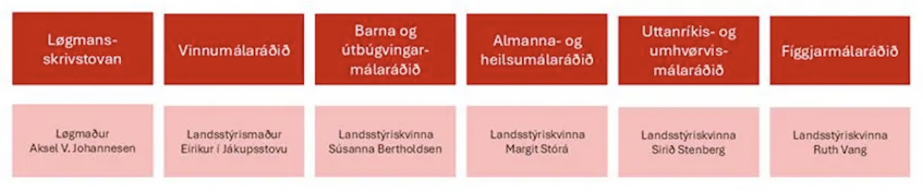 Løgmaður ger broytingar í landsstýrinum, og fimm landsstýrisfólk manna tí nýggju ráðini. Tey eru: