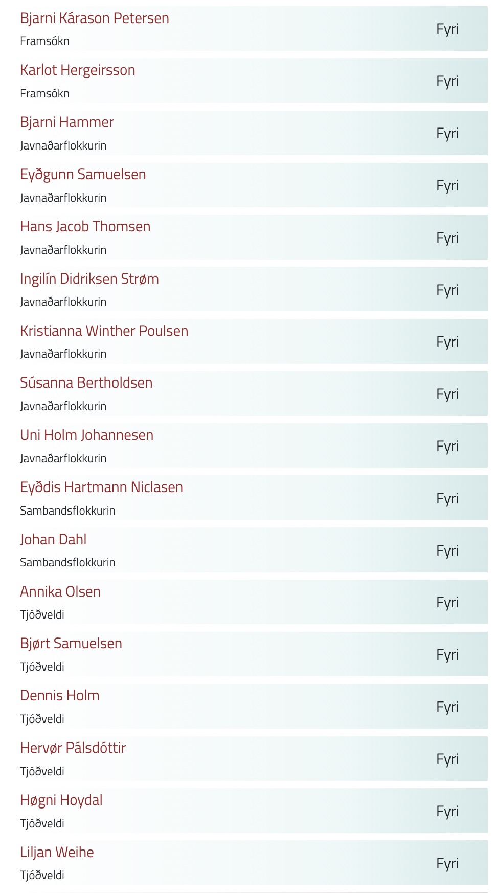 Hesi 17 tingfólkini atkvøddu fyri uppskotinum: