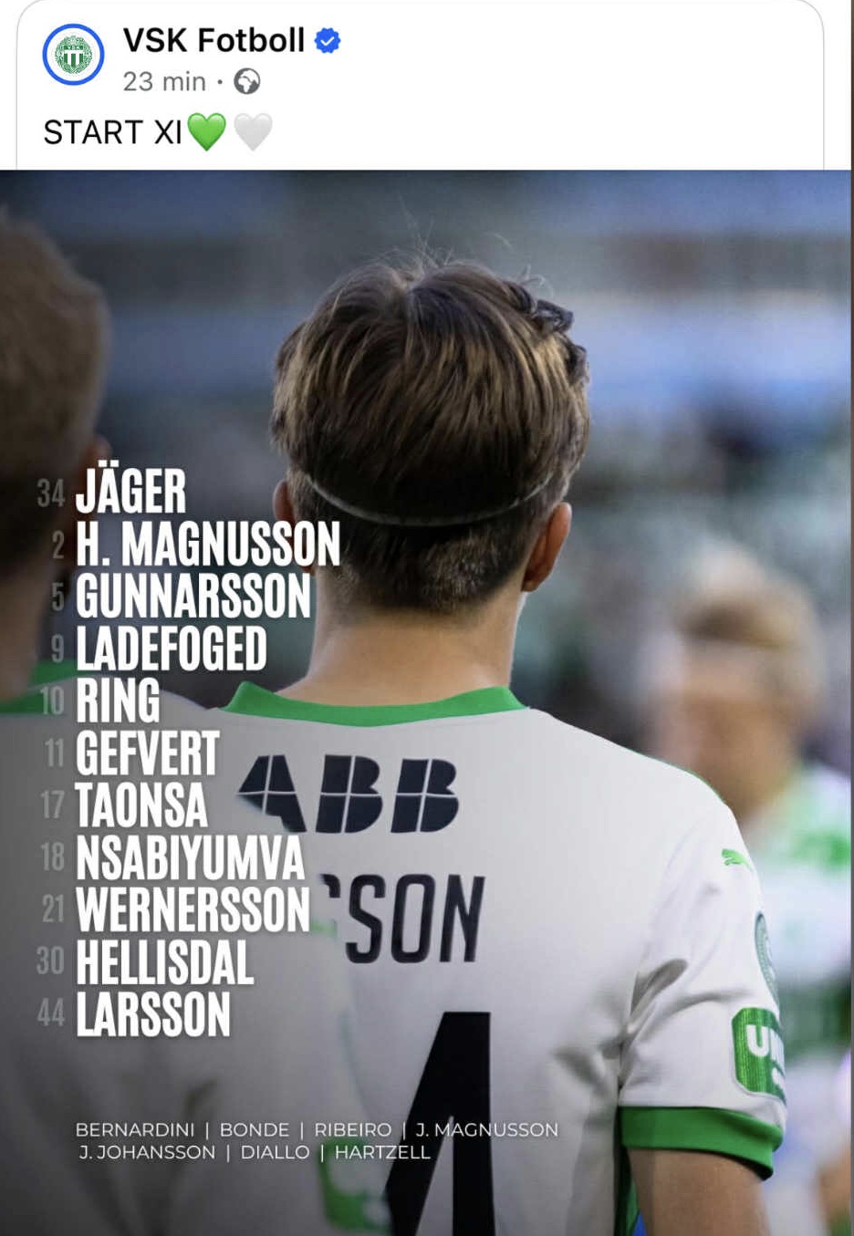 Lið hansara, Västerås SK spælir á útivølli dyst móti Östersund. Mattias er á miðvøllinum hjá Västerås. Dysturin byrjaði klokkan 12, ið er klokkan 13 lokala tíð.