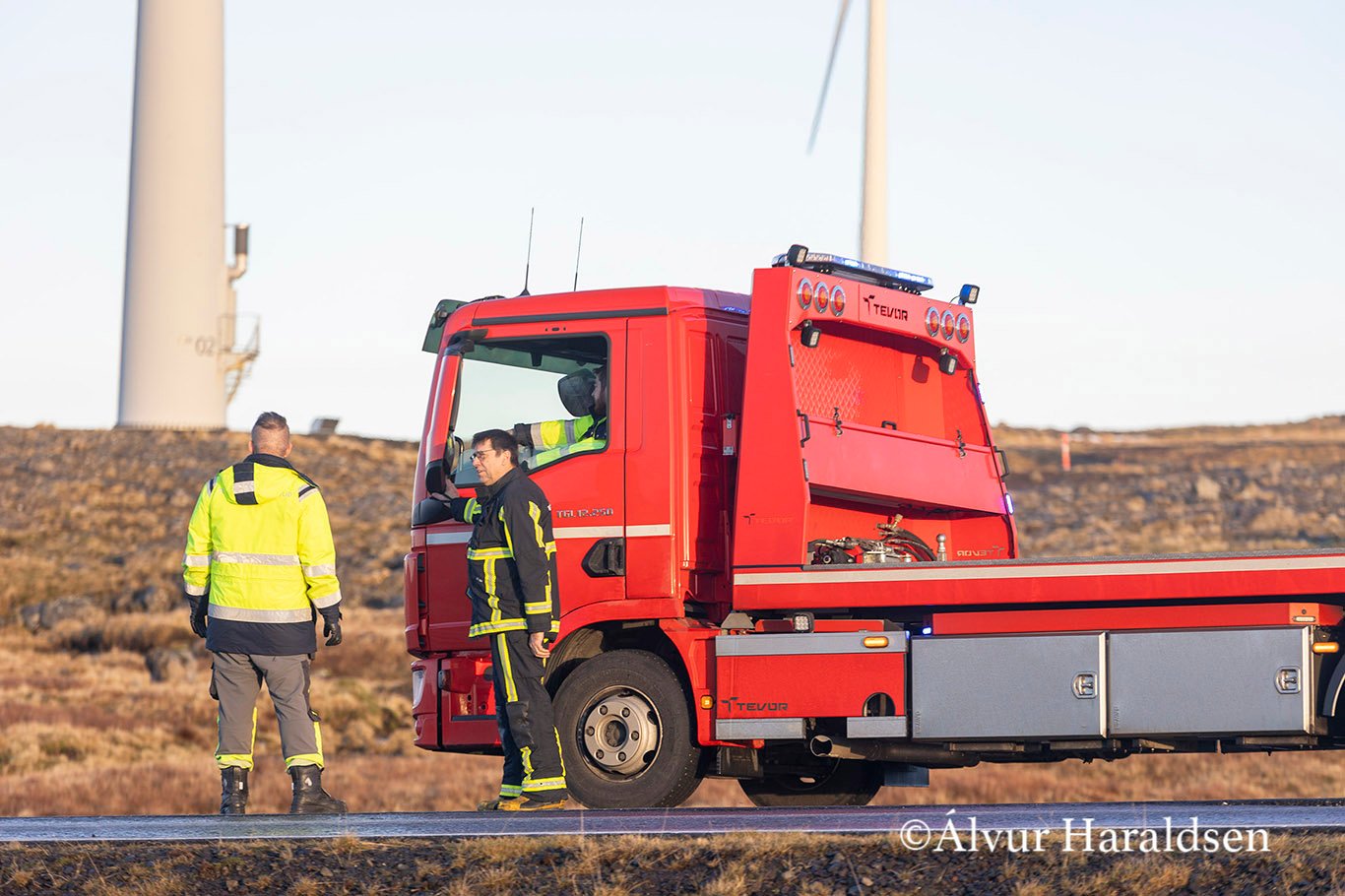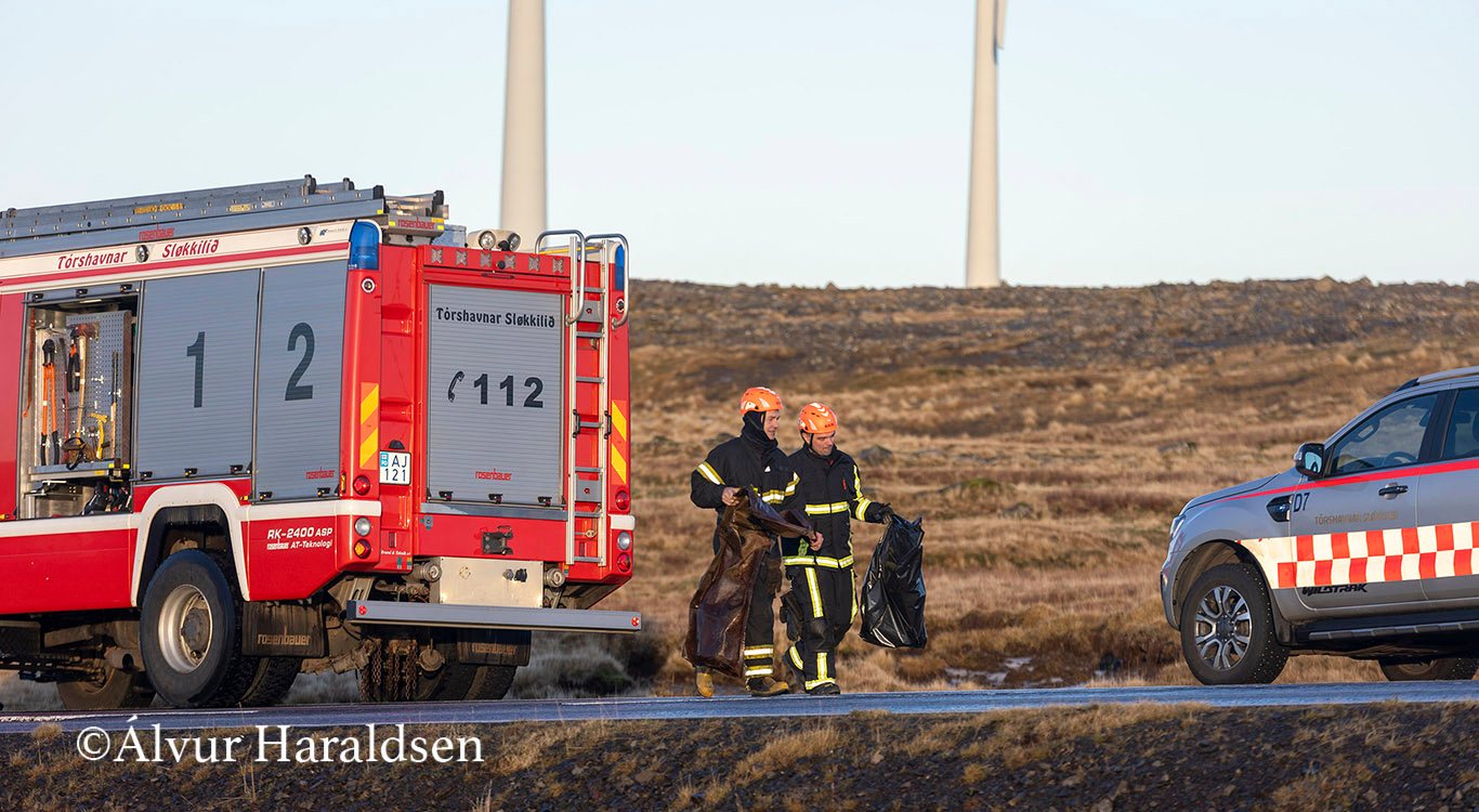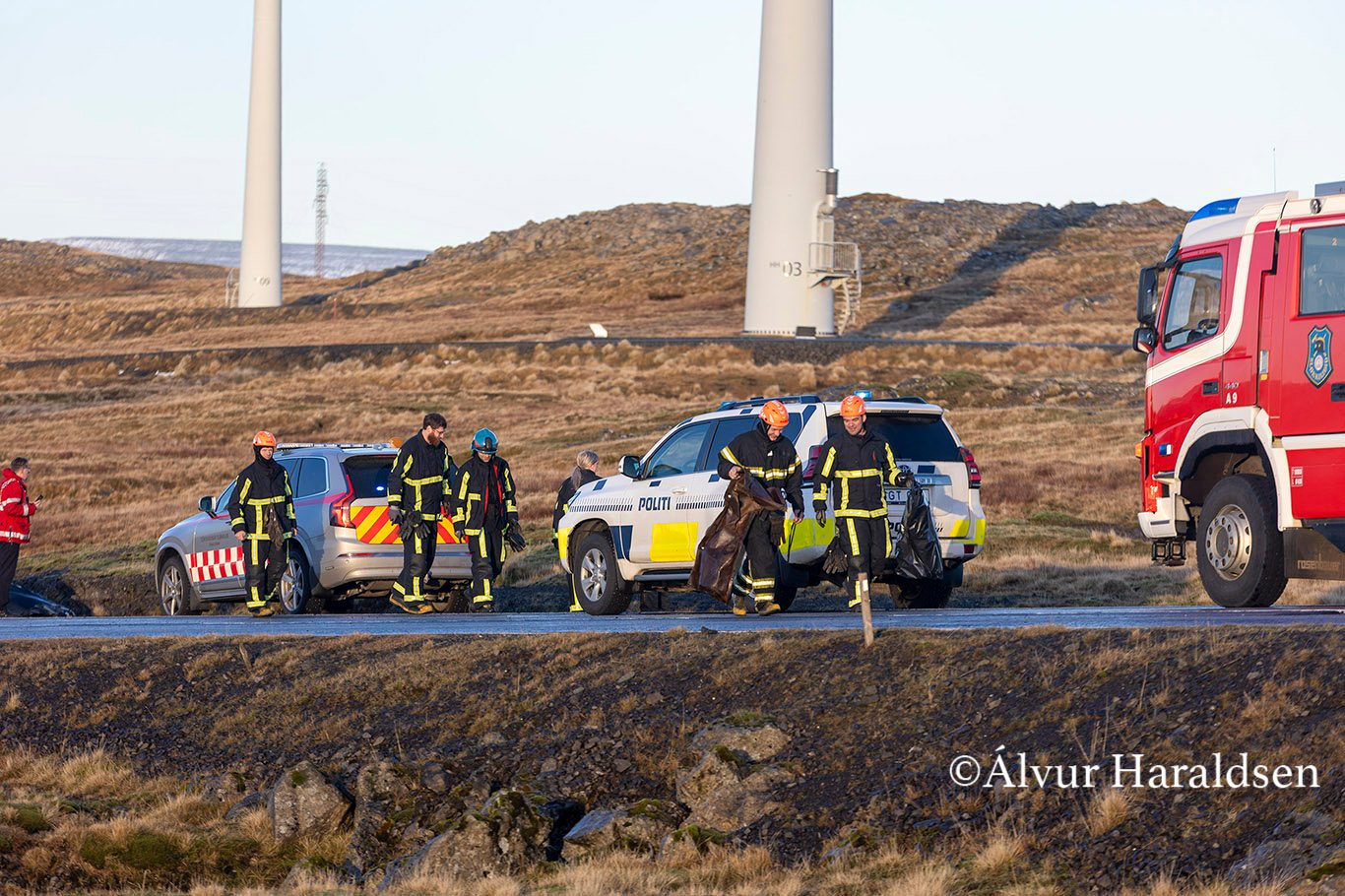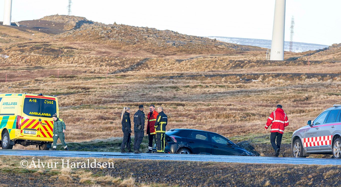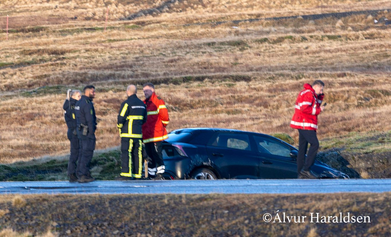 Tað var stutt fyri klokkan 13 í gjár, at løgreglan fekk boð um, at ein bilur var farin út av vegnum uppi á Oyggjarvegnum norðan fyri Kleynisvarða oman fyri Havnina.