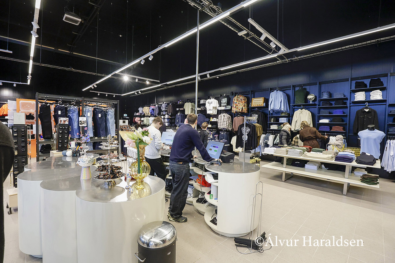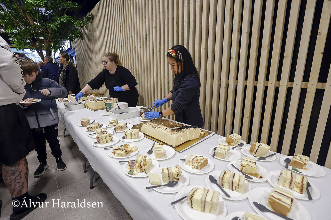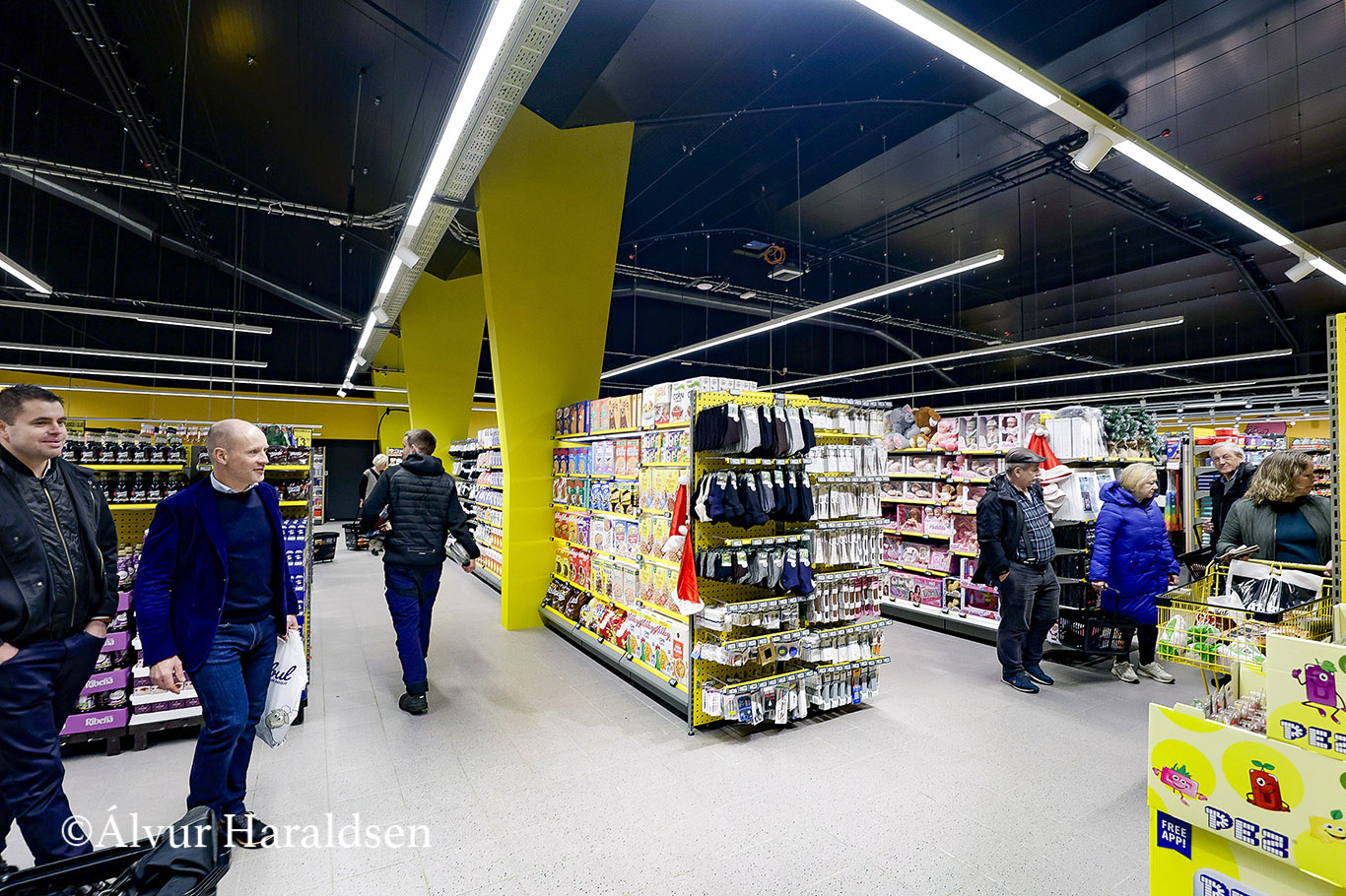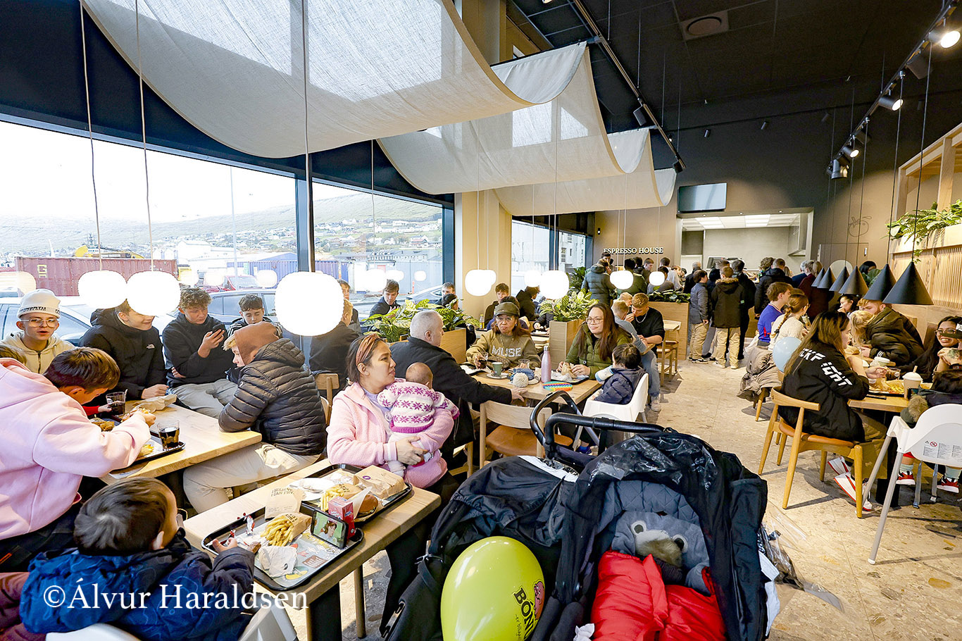 Handilsbygningurin Bryggjan í Runavík latin upp í dag. í bygninginum eru Bónus, Rumbul, Skálkur og Sunset.