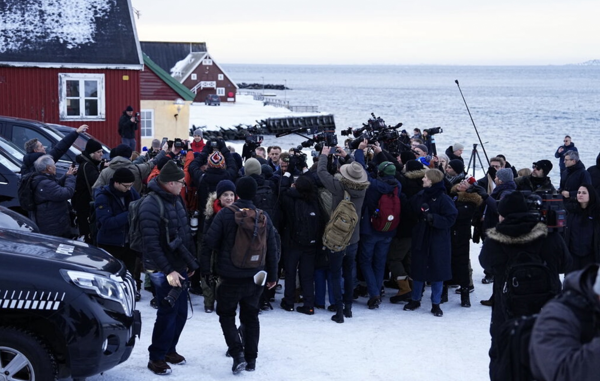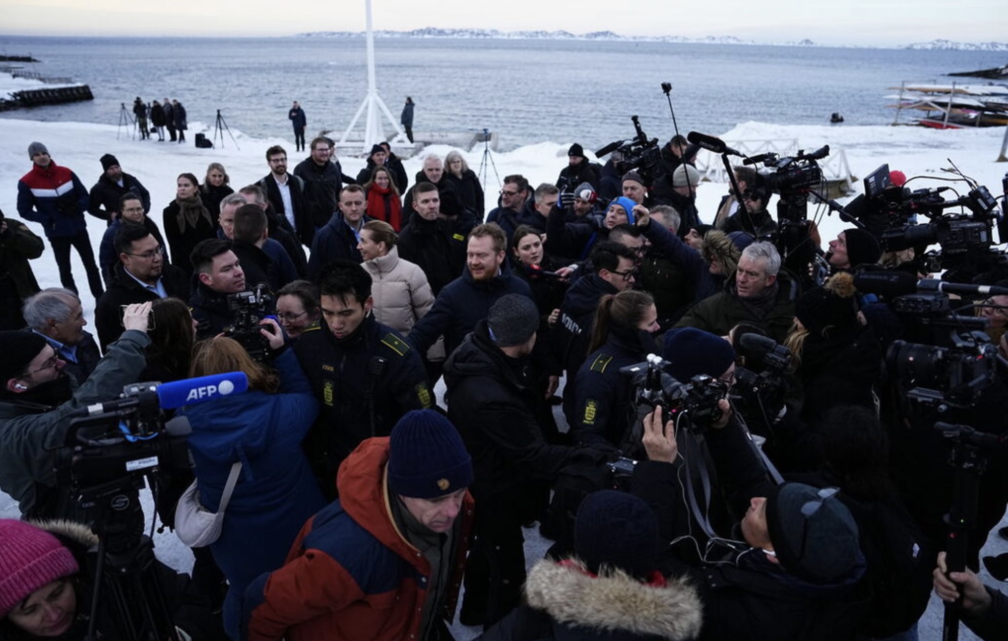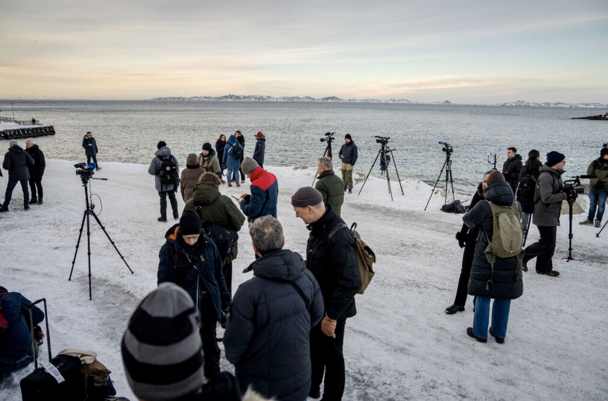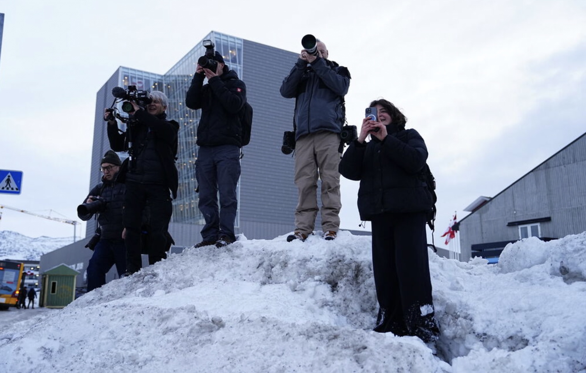 Men alt rokið um Grønland hevur veruliga skapt áhuga fyri Grønlandi í heimspressuni. Nógv størri áhuga, enn vit kenna til í Føroyum. Yvir 70 útlendsk tíðindafólk hava verið í Grønlandi seinastu dagar, og niðanfyri endurgeva vit nakrar av myndinum, sum danska tíðindastovuni Ritzau hevur latið okkum.