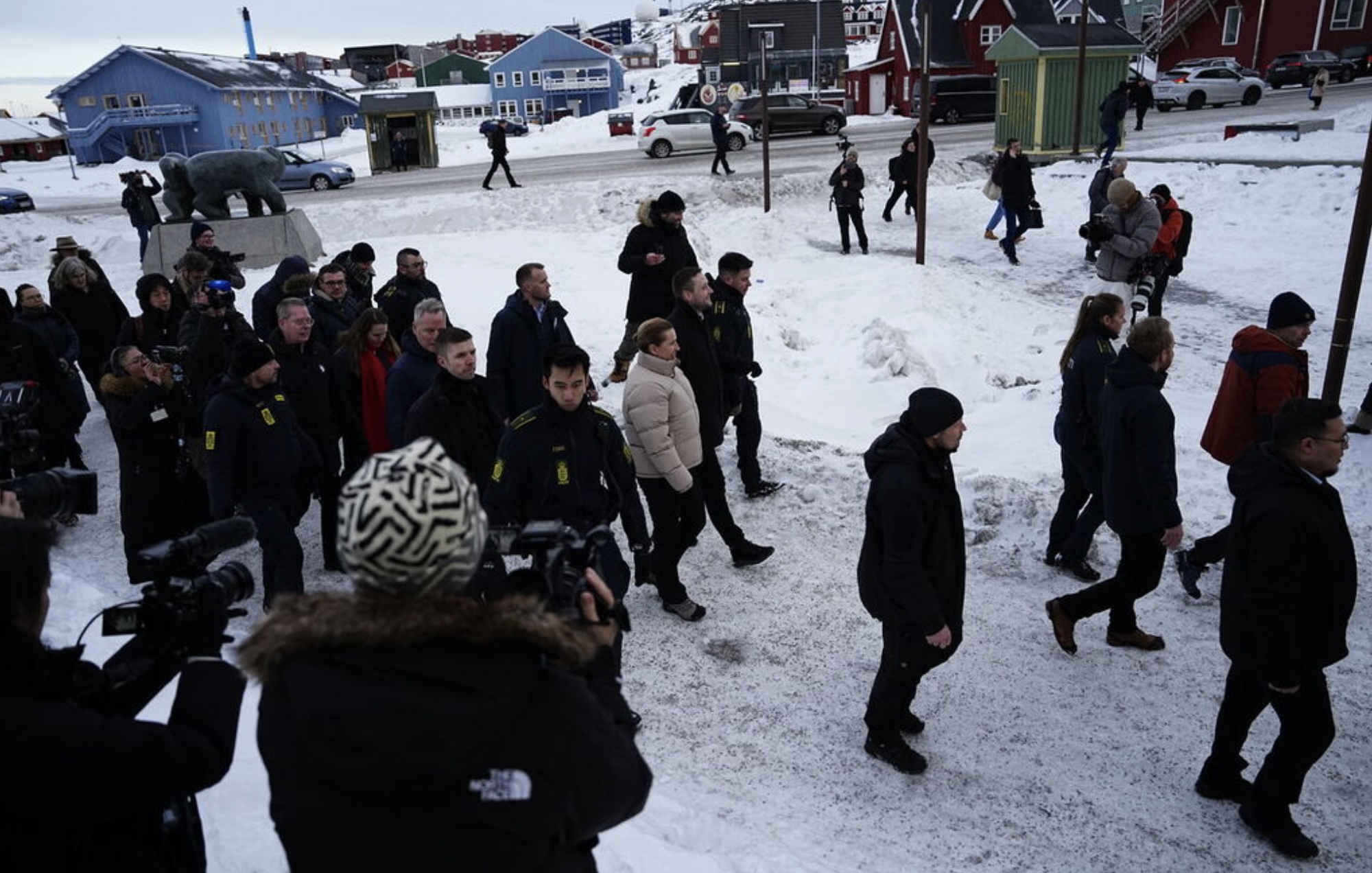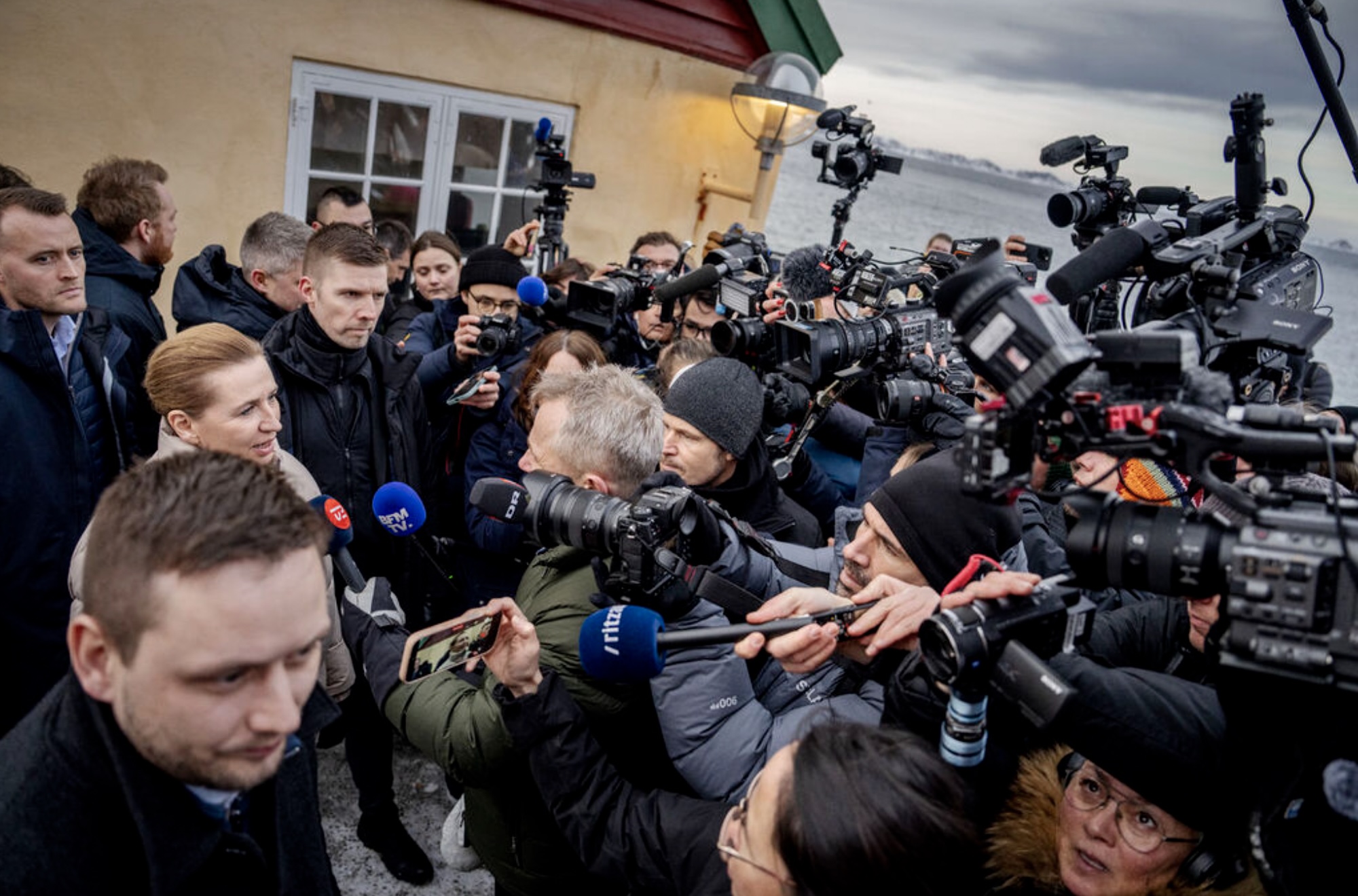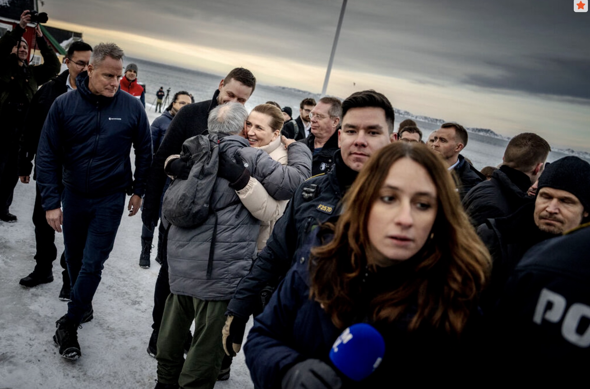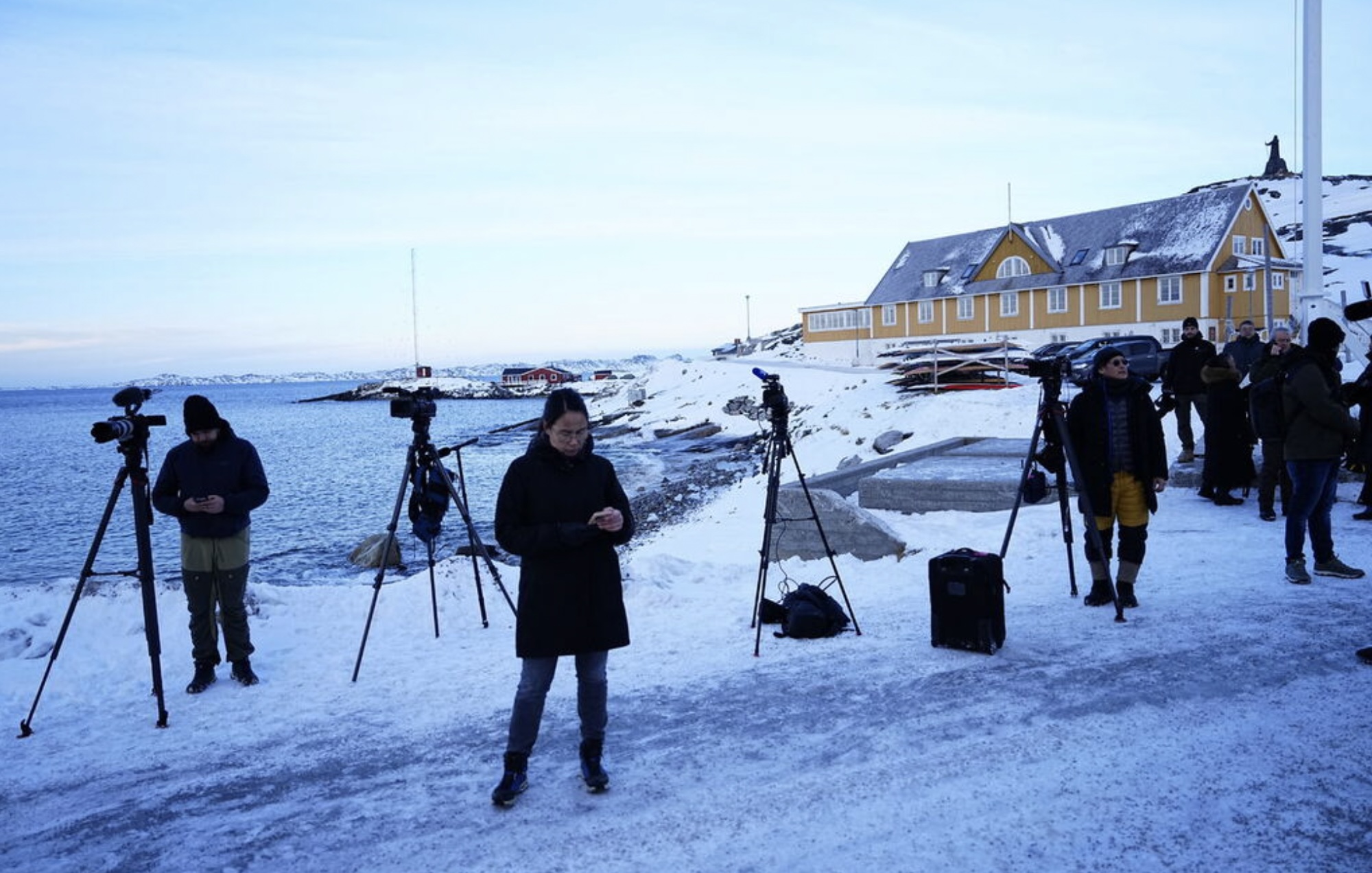 Men alt rokið um Grønland hevur veruliga skapt áhuga fyri Grønlandi í heimspressuni. Nógv størri áhuga, enn vit kenna til í Føroyum. Yvir 70 útlendsk tíðindafólk hava verið í Grønlandi seinastu dagar, og niðanfyri endurgeva vit nakrar av myndinum, sum danska tíðindastovuni Ritzau hevur latið okkum.