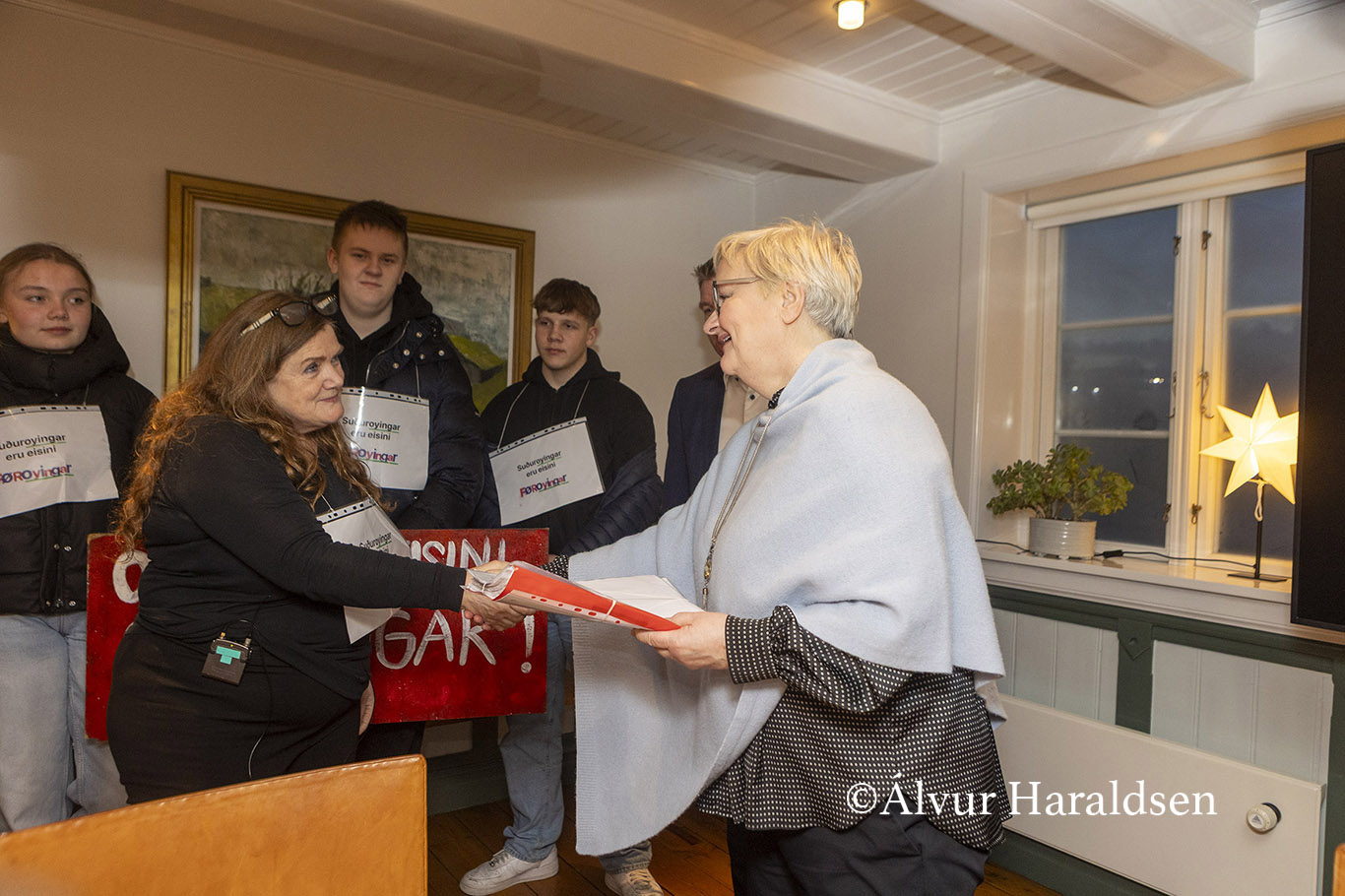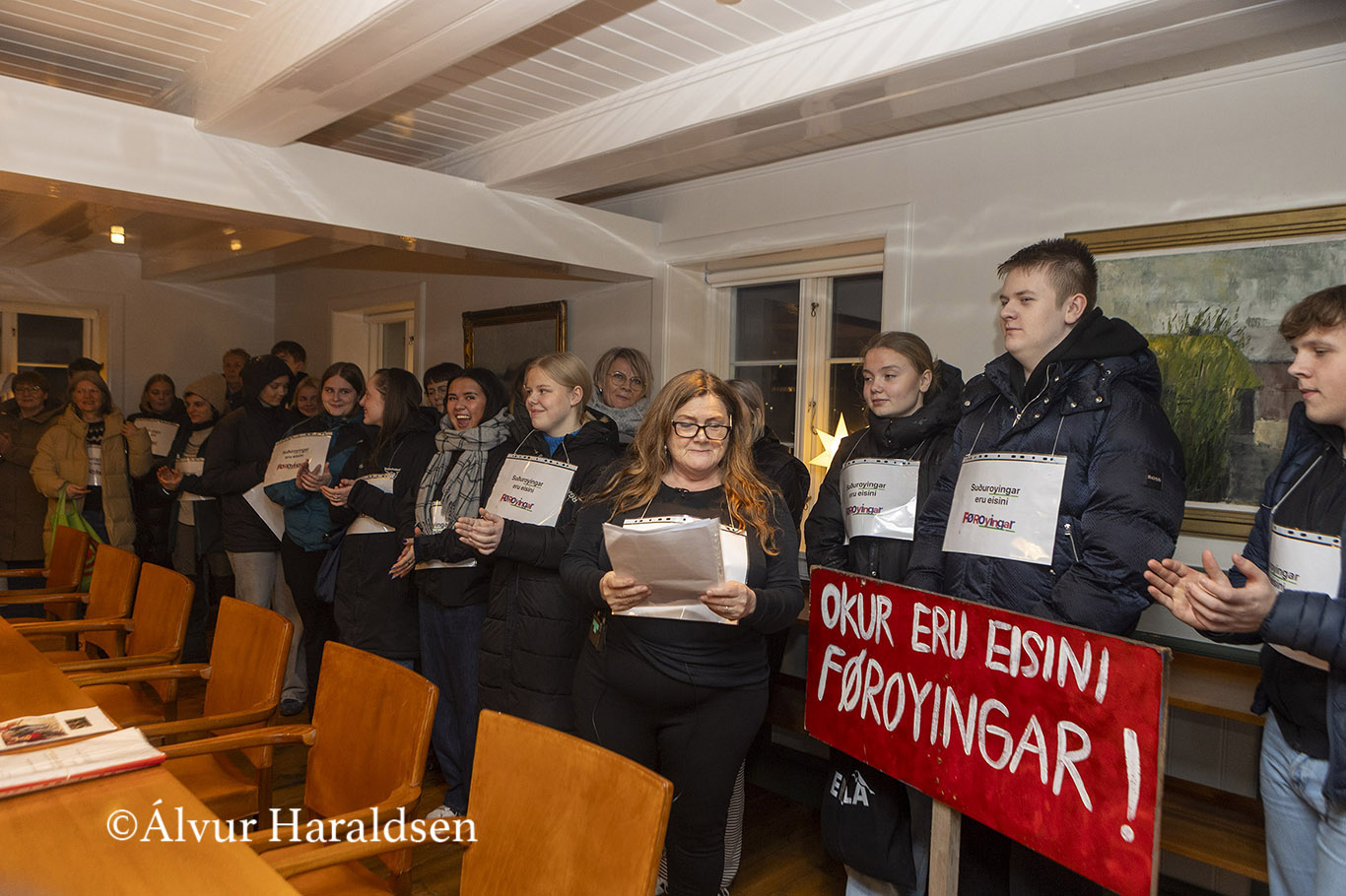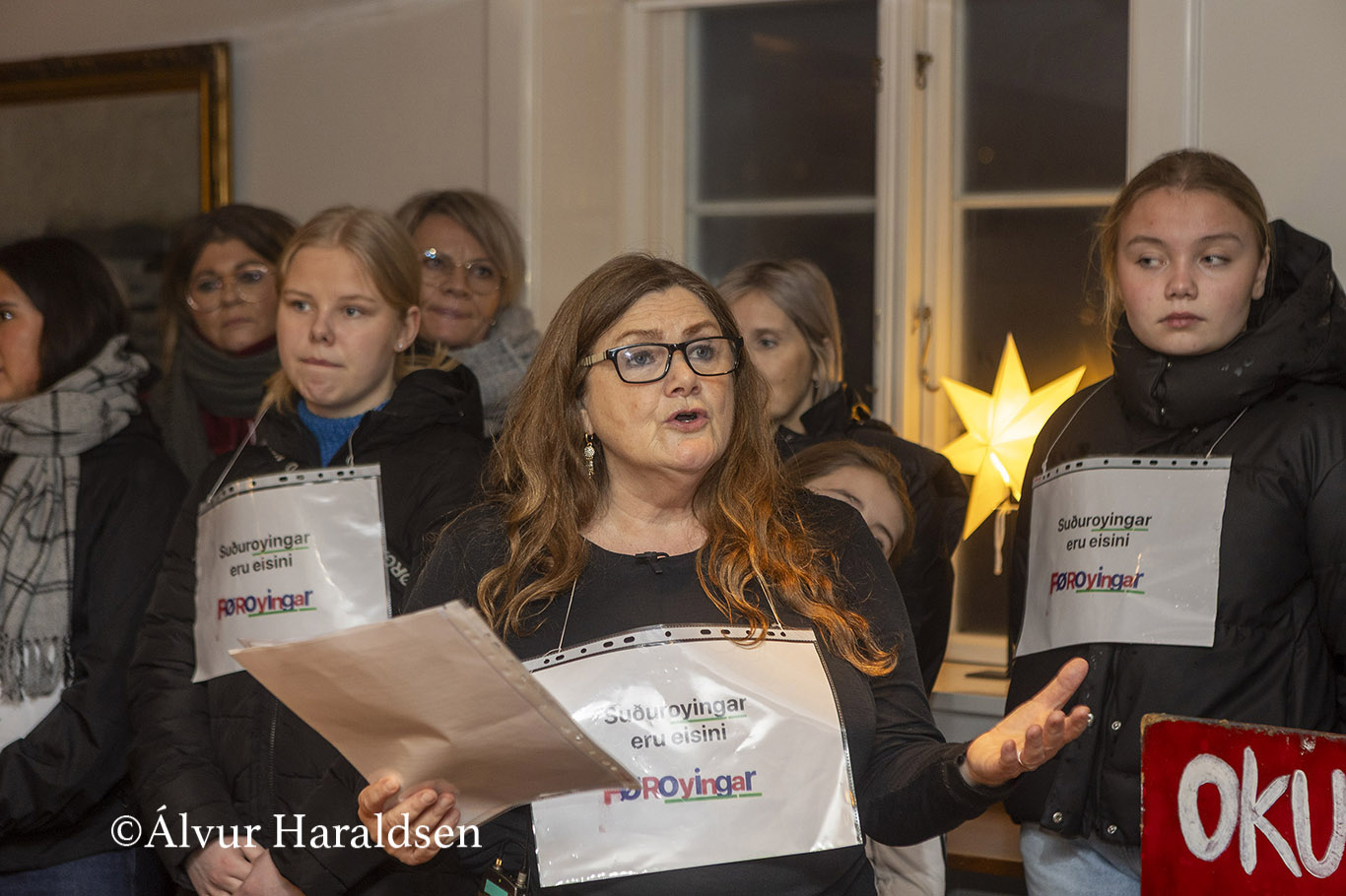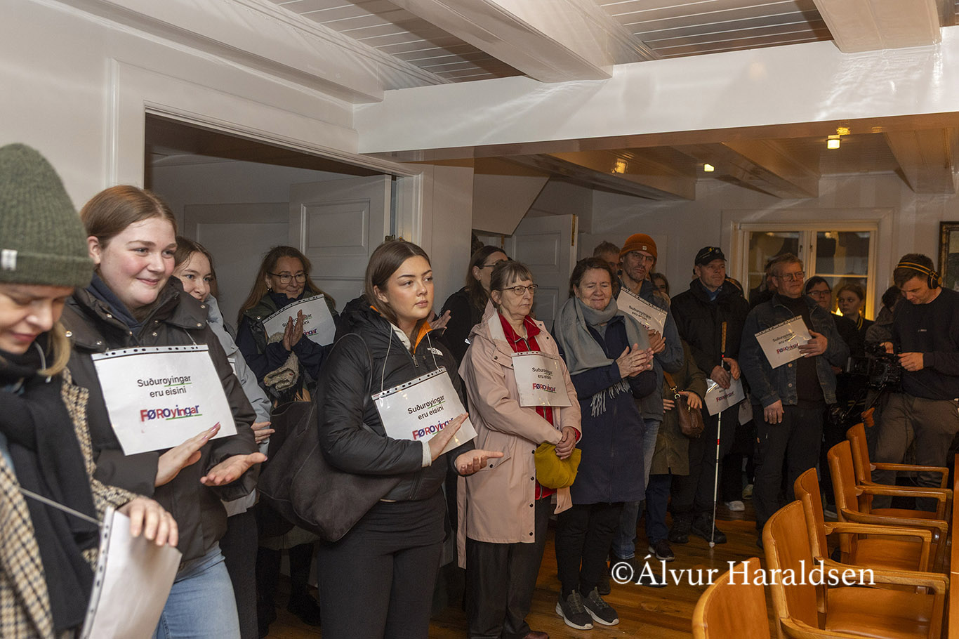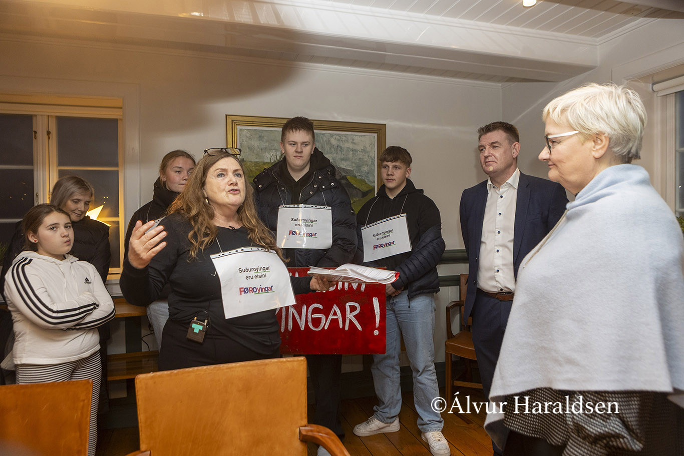 Mótmælis fólk úr Suðuroy, vitjaðu í Tinganesi í morgun.