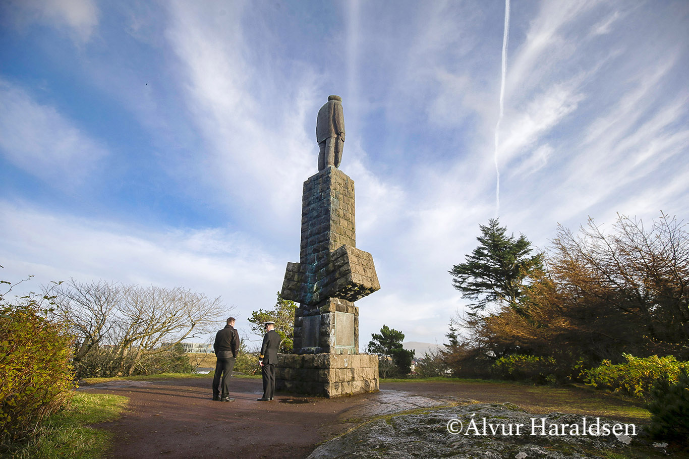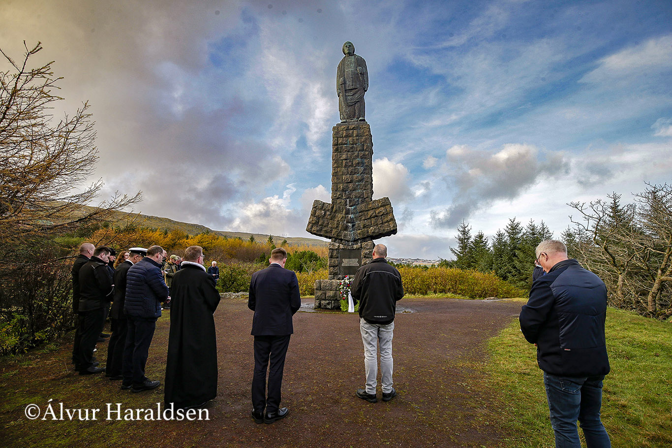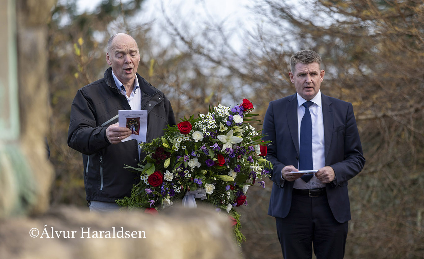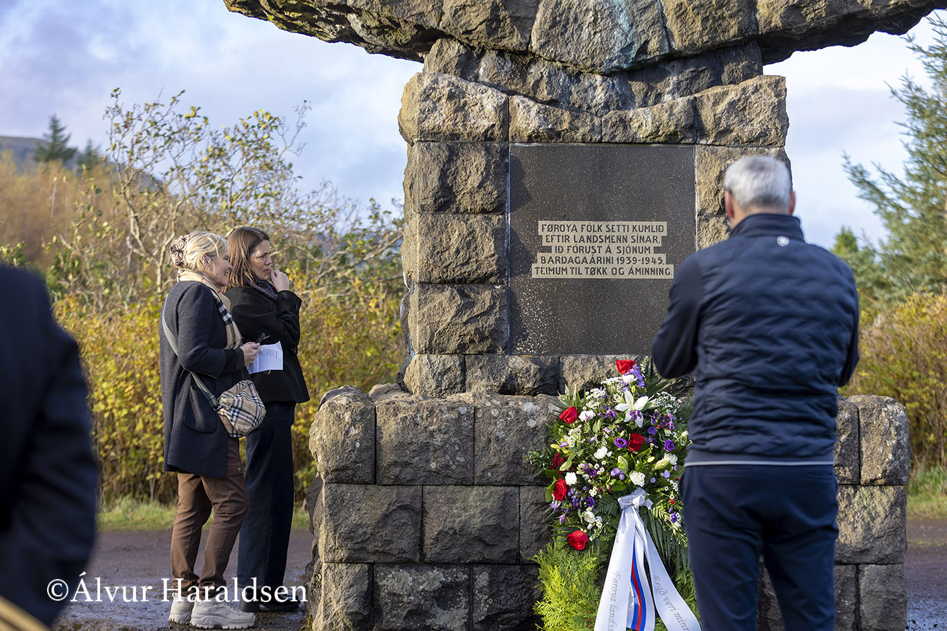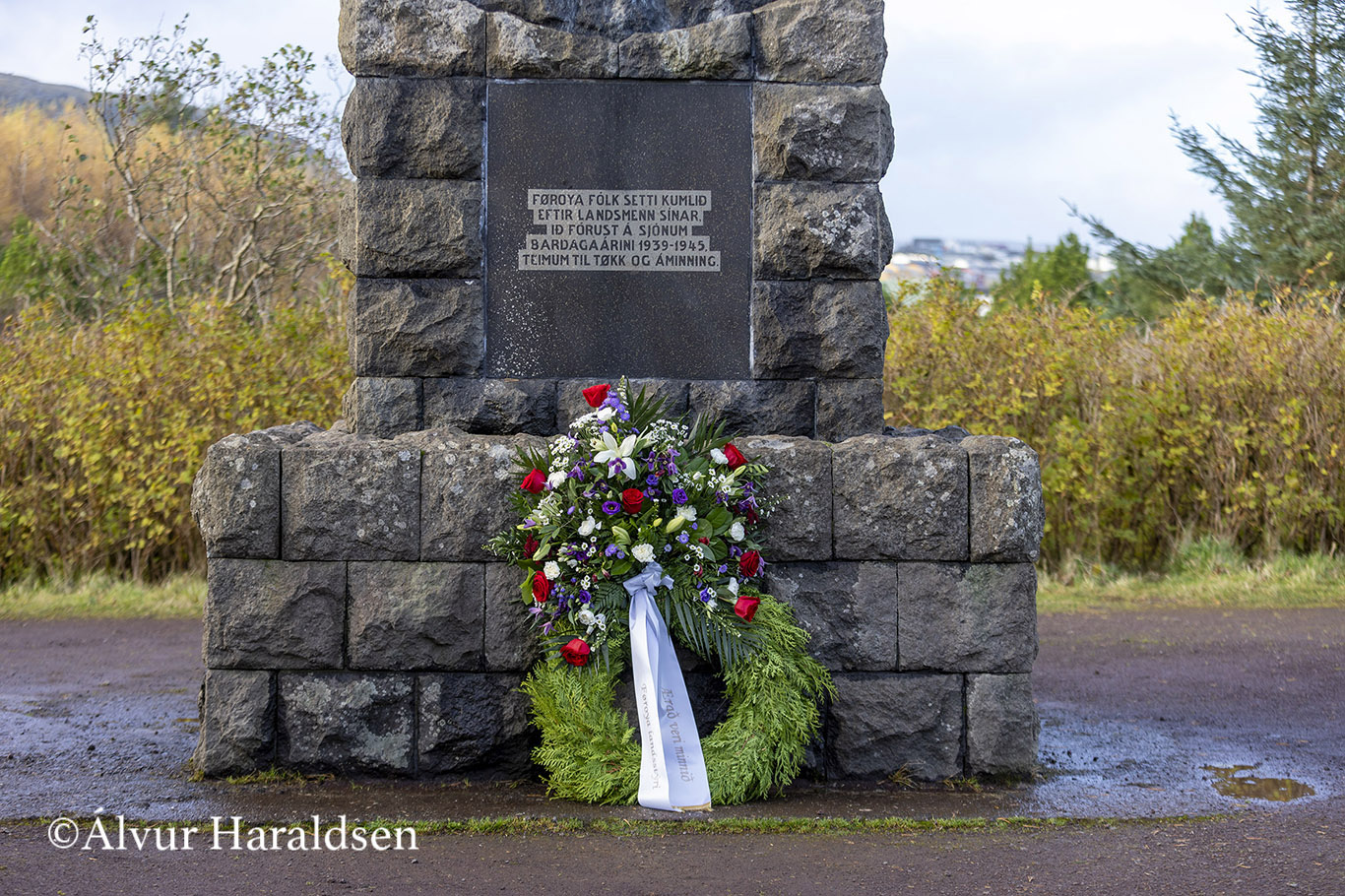 Løgmaður hevur lagt krans við minnisvarðan í Viðarlundini í Havn