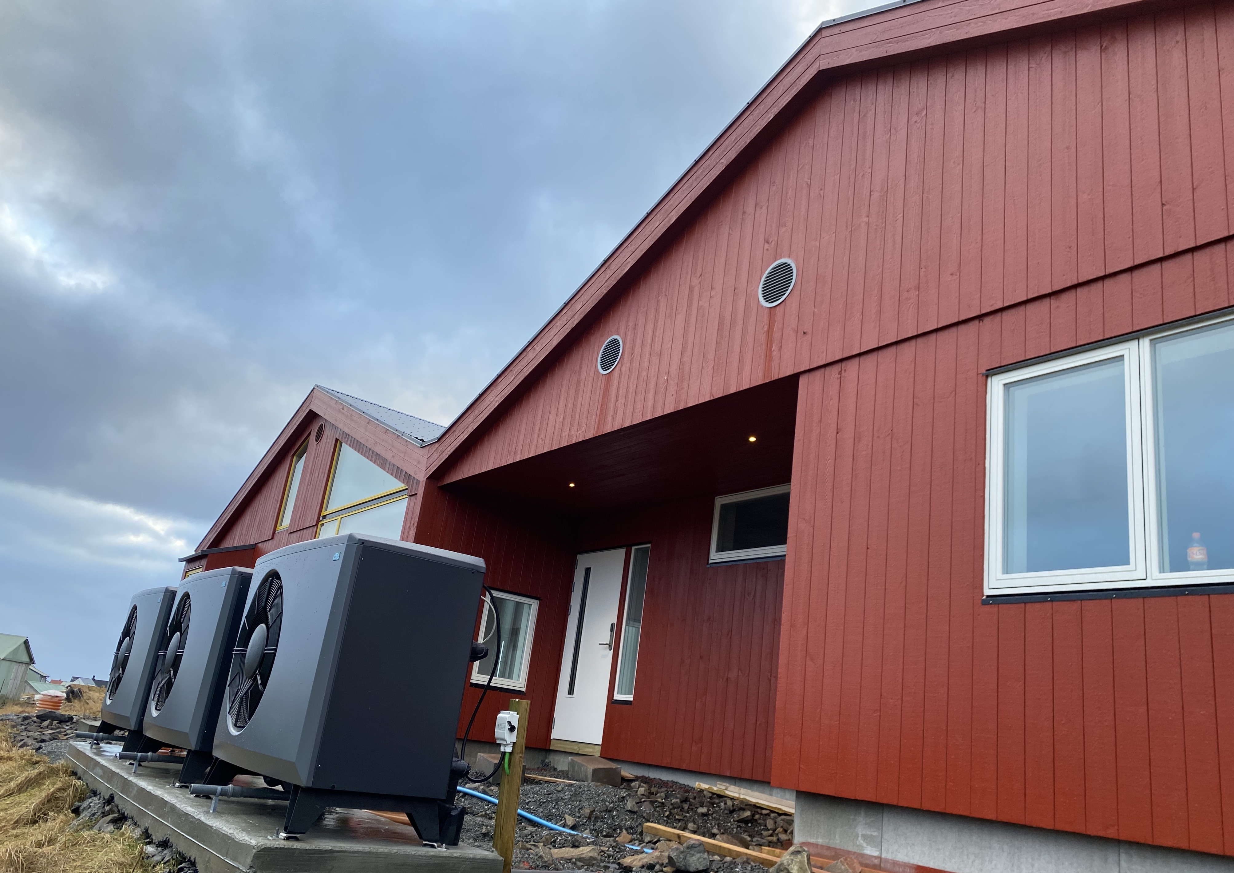 Kristian Oskar Henriksen sigur, at gólvhiti er í øllum bygninginum, og hetta er ein hitaskipan, sum koyrir upp á luft til vatn.