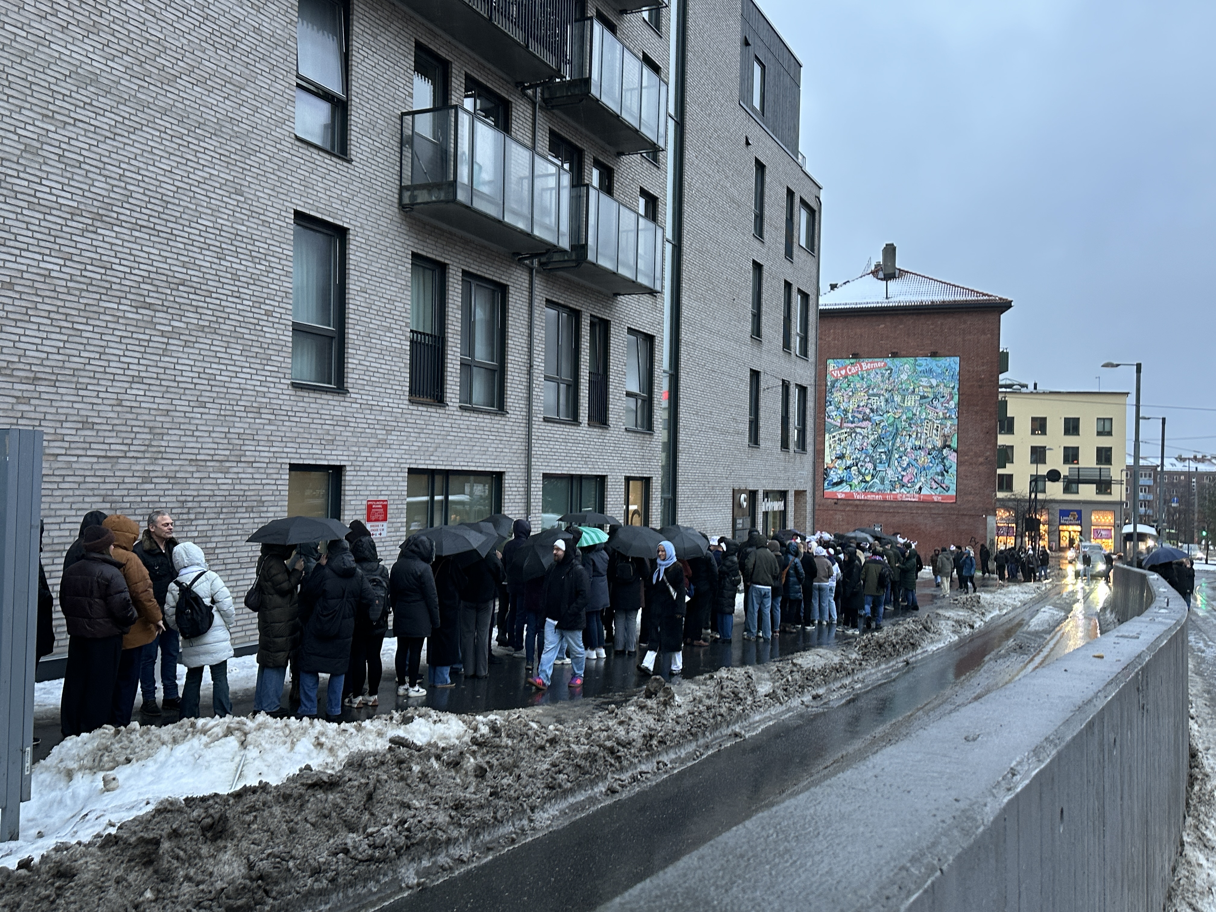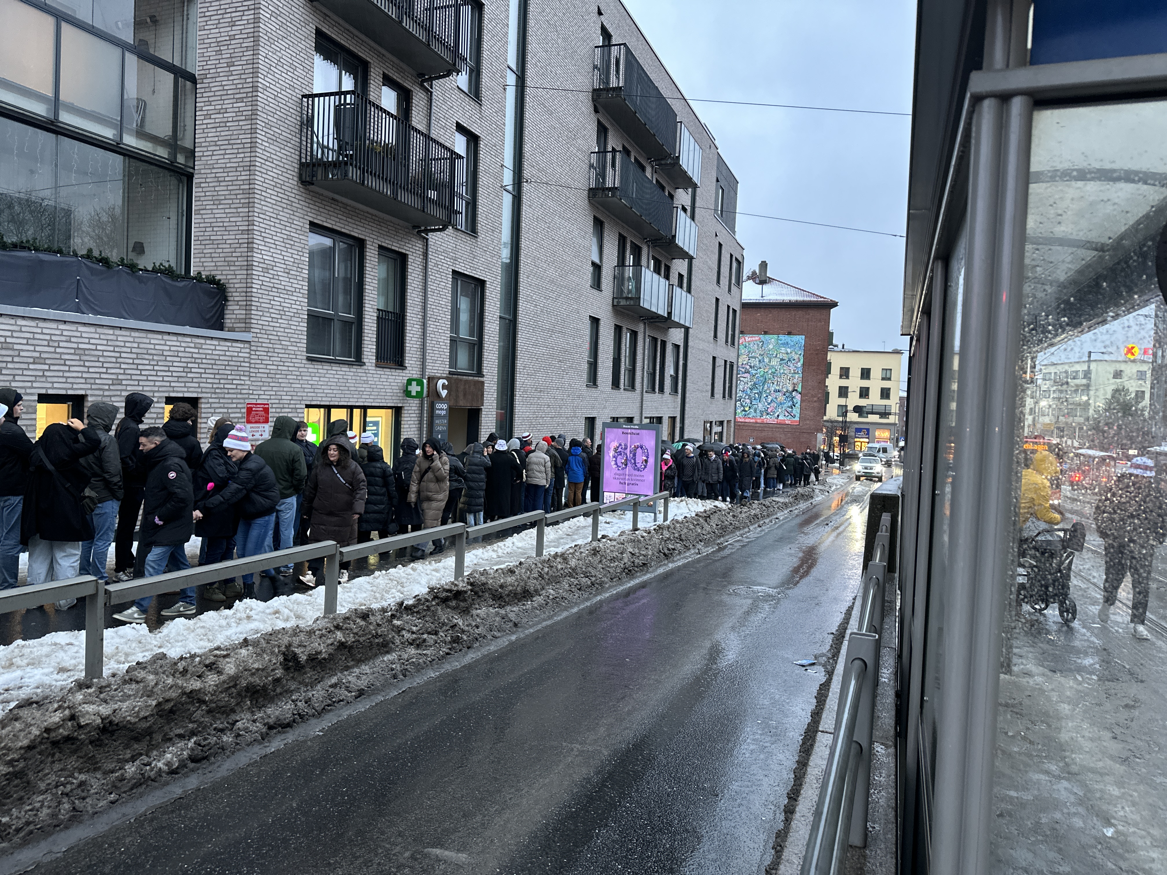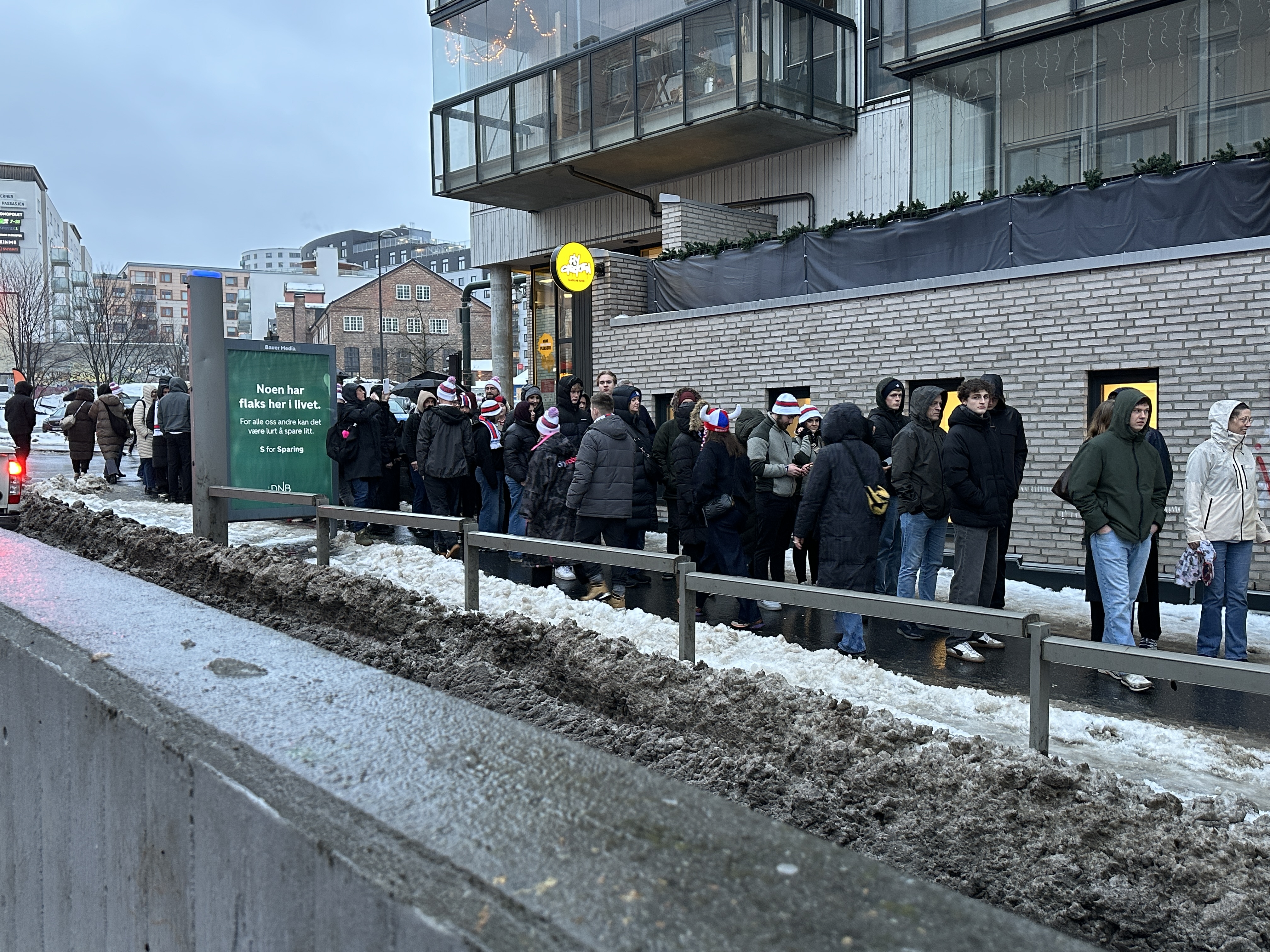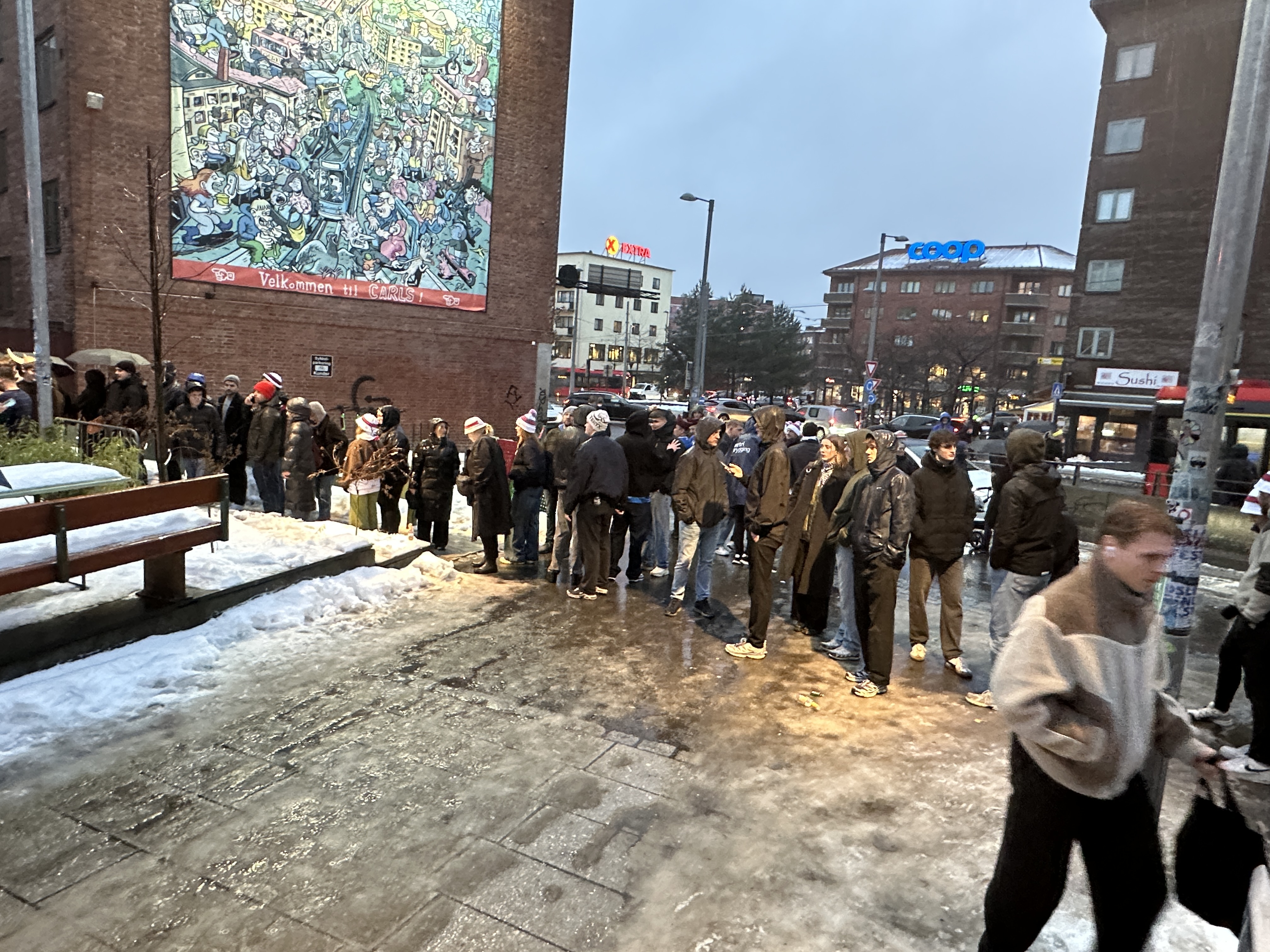 Hóast pláss bert var fyri 1.500 fóækum, so høvdu nógv fleiri enn tað leitað sær til upphitingina í Carls í Trondheimsgata. Nógv stóðu og bíðaðu til fánytis í regninum uttanfyri.