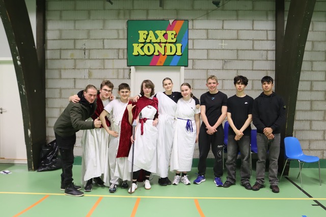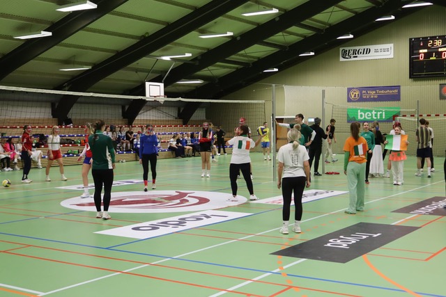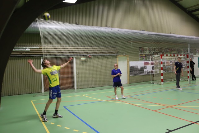 Eftir frálíka døgurðan, ið var borðreiddur í VB-húsinum, fóru øll, bæði næmingar og starvsfólk úr øllum skúlunum, undir stóru flogbóltskappingina í Vágs høll.