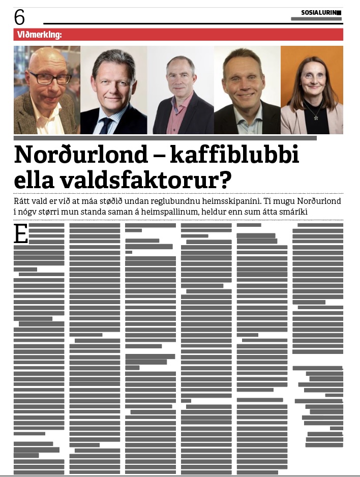 Ótryggleiki í heiminum hevur aftur nú fingið norðurlendska samstarvið á breddan. Tí skulu vit lofta momentum og tryggja okkum, at áður ótroyttir møguleikar at skipa eitt meira bindandi norðurlendskt samstarv ikki endurtaka seg. Orsøkin er einføld: Stóru avbjóðingarnar fyri okkara viðkomandi í framtíðini – millum annað uttanríkispolitikkur, trygd, umhvørvi, orka, flutningur og menningin í Arktis – kann einki av okkara londum loysa einsamalt. Tískil mugu vit í nógv størri mun handla sum sameindir norðurlendskir statir.