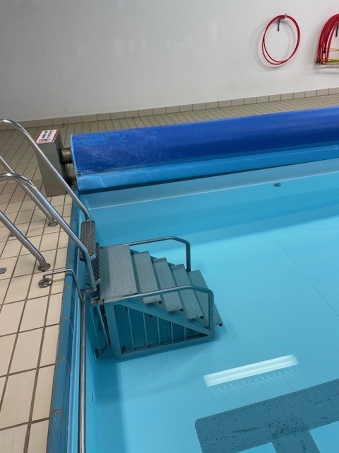 Nýggja trappan skal gera tað lættari og tryggari hjá øllum at koma í og úr hylinum. Trappan hevur bæði handlista og eitt gott hall, ið ger tað lættari hjá børnum, eldri og øðrum brúkarum at sleppa trygt í hylinum.