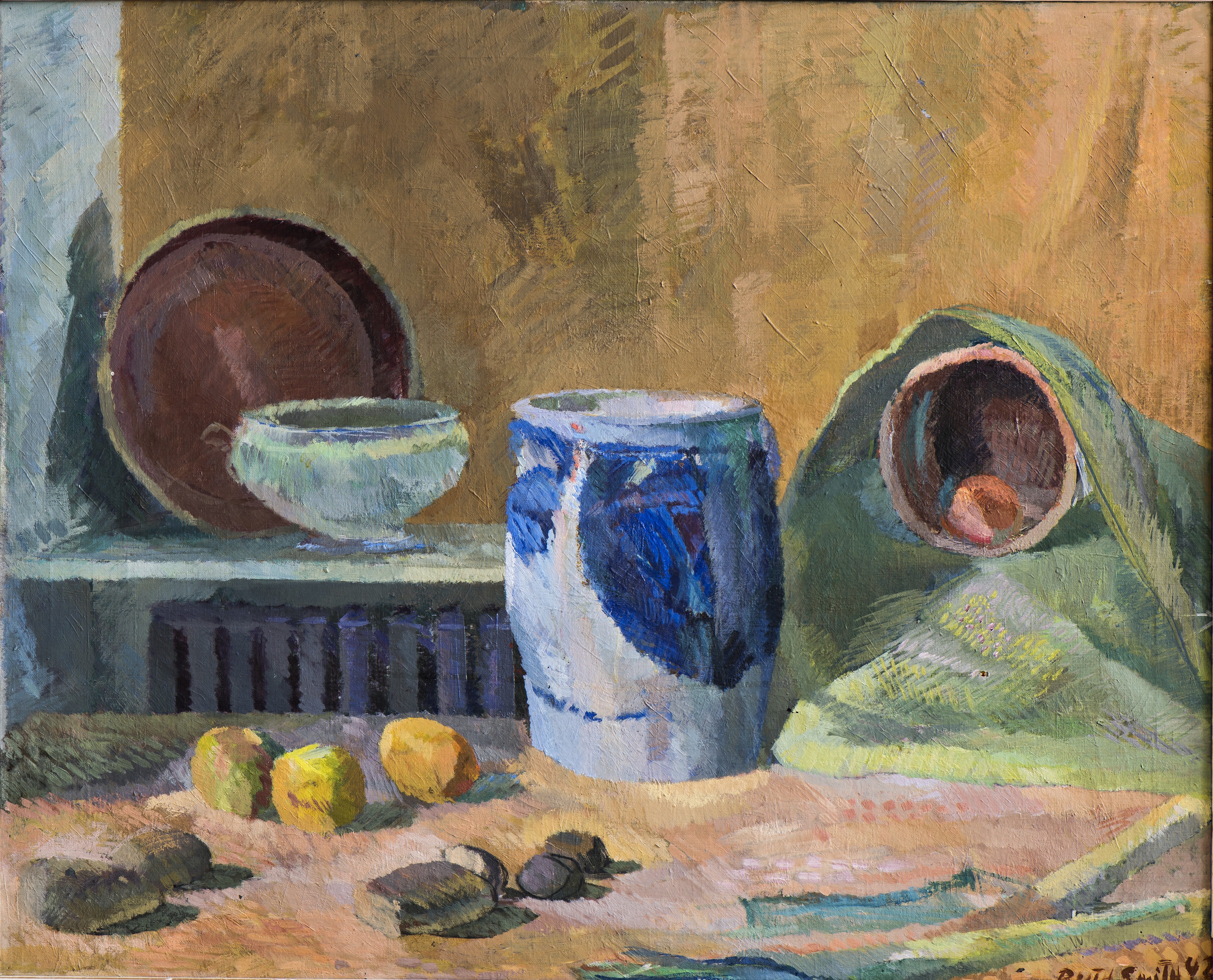 Savnið hevur keypt tvey týdningarmikil verk eftir Ruth Smith (1913-57). Tað eina er ein uppseting við bláum vasa, sum er tann størsta av hesum slag í samlingini, umframt ein málning av Nesi. Uppseting við bláum vasa og appelsinum er eitt týdningarmikið íkast til at miðla listina hjá Ruth Smith, sum gjørdi nógv við at mála uppsetingar. Ruth er serliga kend fyri at mála bygdina Nes í fleiri av sínum málningum. Hesin málningurin ber brá av einum øðrvísi litavali og uppbygnaði av myndevninum, sum vísir fjølbroytni í málningunum hjá listakvinnuni.